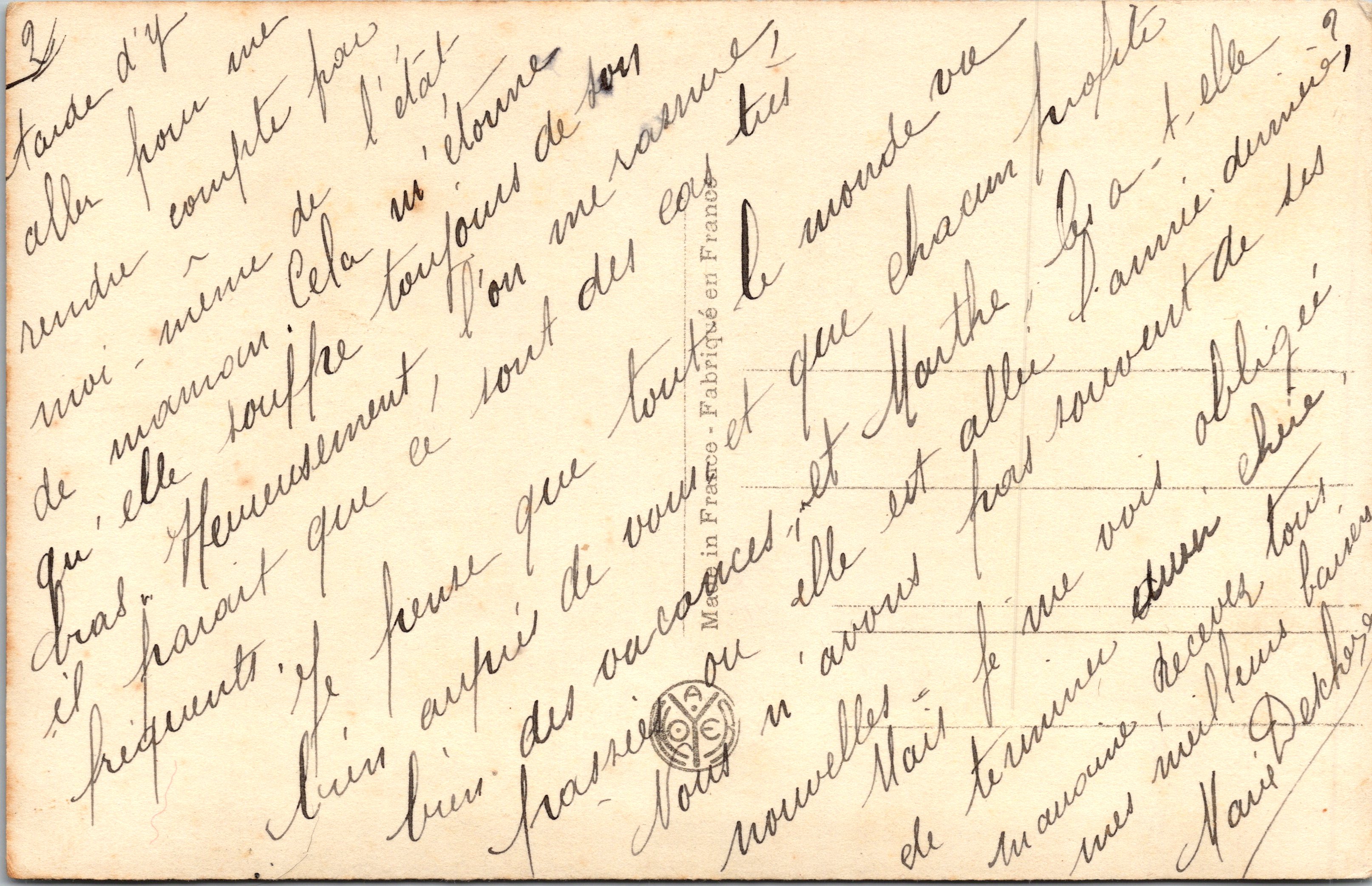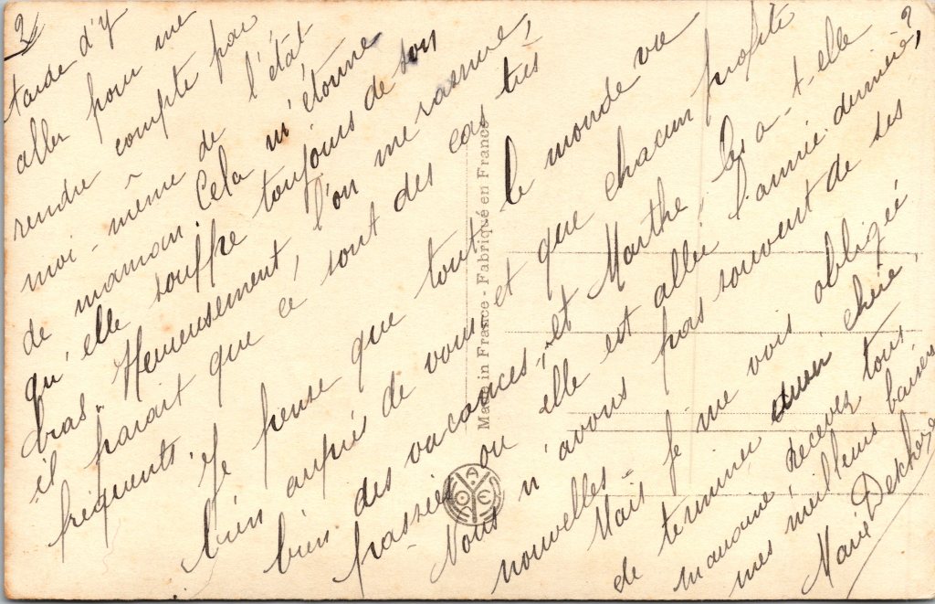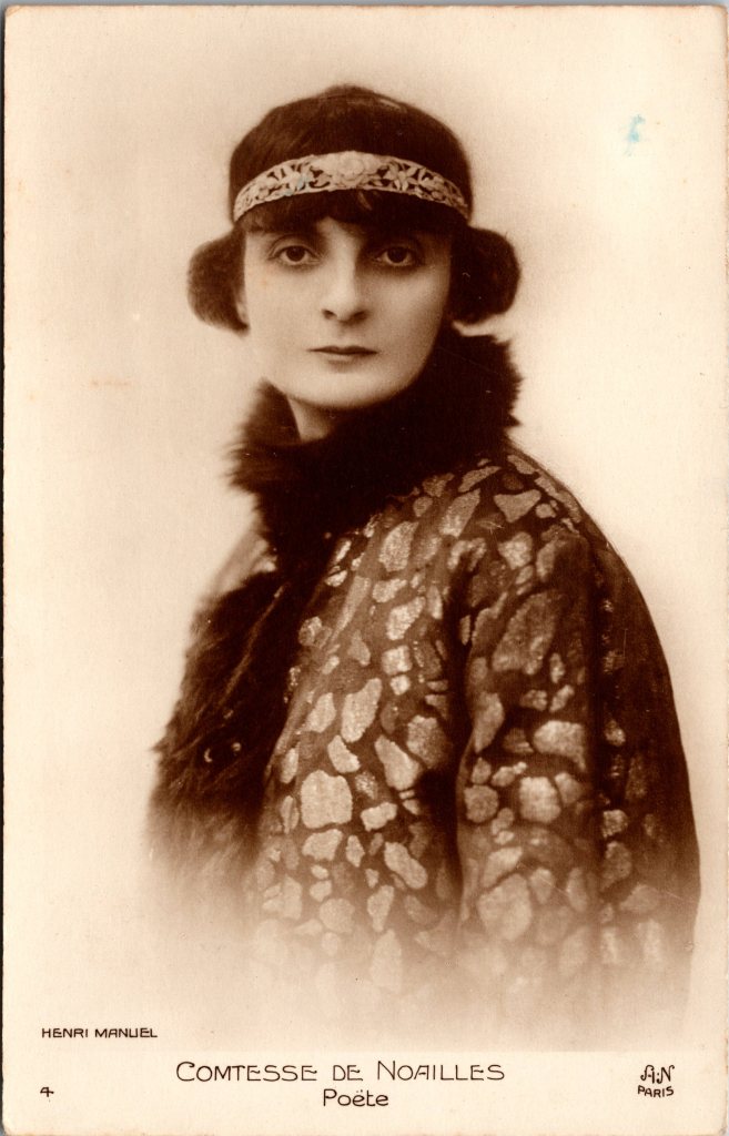 Postcard 2 offers a second portrait of Miss Badet. The pretty actress is wide eyed and wearing a lot of jewelry. The photograph was taken by Henri Manuel (1874-1947). In 1900, Manuel opened a portrait studio in Paris with his brother Gaston. He quickly became well known for his portraits of politicians, artists, and athletes. His images were used by news agencies . His studio became the largest studio in Paris and it attracted many young photographers who sharpened their skills there. In 1925 the brothers expended their business to include fashion photography. They worked for such designers as Chanel, Patou, and Lanvin. The studio shut down during World War II and many of their photographic plates were destroyed. Manuel was the official photographer for the French government from 1914 through 1944. SOLD