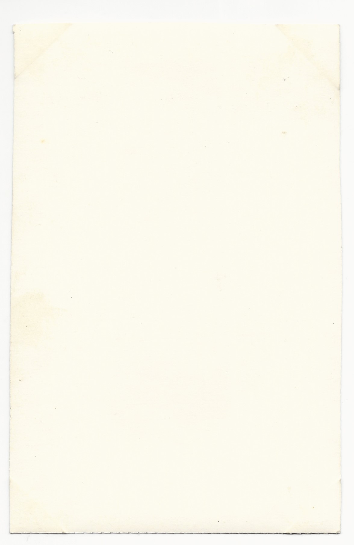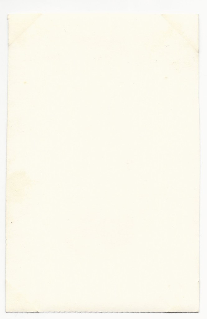 This striking 1896 Cabinet Card portrait captures a well-dressed Hispanic (likely Mexican-American) family, photographed in San Bernardino, California, by C.L. Sears, whose studio was located at 452 Third Street. The formal composition, attention to detail, and clarity of the photograph make it a compelling example of late 19th-century Southwestern portraiture. The image features four individuals: Standing at left is a young woman in a pristine white dress with puffed sleeves and a wide cinched belt. She wears gloves and a marvelous hat adorned with ribbon and flowers, her expression poised yet solemn. Seated in the center is another woman, likely the matriarch, holding an infant in her lap. She wears a richly patterned dark dress with a high collar and decorative trim. Her elaborate hat features feathers and a dark plume. Her gaze is direct and proud. The baby is dressed in a long, frilly white gown and bonnet, eyes barely open, swaddled securely in the mother’s arms. Standing to the right is a bearded man, presumably the patriarch. He wears a wide-brimmed hat, white shirt, and a textured vest, exuding a calm, grounded presence. Each subject’s expression is serious. Their clothing suggests they were dressed in their finest attire, marking this as a significant family occasion. C.L. Sears operated a photographic studio in San Bernardino in the late 19th century. His studio address, 452 Third Street, places him in the heart of the developing Southern California region during a period of migration and cultural blending. Sears is known for his clear, well-composed portraits and was active during a time when San Bernardino served as a crossroads for Hispanic, Anglo, and Indigenous communities. While not widely documented in photographic history texts, Sears’ work appears occasionally in regional archives and vintage photograph collections, typically featuring local residents, families, and scenes of everyday life. His work is valuable for its documentary quality and its representation of the diverse people who populated Southern California in the 1890s. The reverse of the Cabinet Card bears a handwritten inscription in pencil. It appears to read: “To Forosio Padilla, Cidar, Arizona,1896”. My research indicates that there is no town in Arizona named Cidar. I believe that “Cidar” is a mispelling and should read “Cedar”, Arizona. Cedar was a gold, silver and copper mining town in Mohave County, Arizona. It was founded circa 1875. Perhaps Senor Padilla and his family were from Cedar. (SOLD)