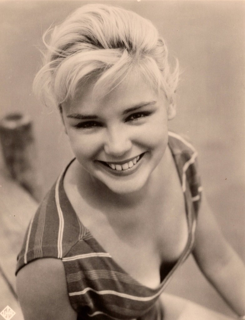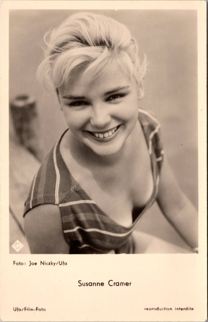 This risque vintage real photo postcard features German film and television actress, Susanne Cramer (1936-1969). She was born in Germany and died at the age of 32 in Hollywood. Her cause of death was pneumonia. During a six year career on American television (1963-1969) she appeared in popular shows, such as “The Man From Uncle”, “Perry Mason”, “Get Smart” and “Hogan’s Heroes”. The IMDb lists Cramer’s filmography as having 46 credits between 1956 and 1969. She began her career in Germany, working in theater and shifting into films. Cramer’s had an unstable private life. She was married five times. One of her husbands she married twice. Her first two marriages were to actors. The first marriage lasted a year and the second marriage ended after five months. During her first marriage, she had two suicide attempts. Her longest marriage was of two year duration. This vintage postcard is in very good condition (see scans).