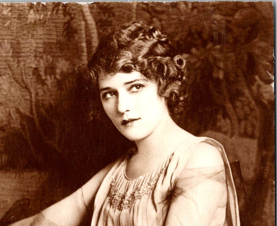 This vintage real photo postcard features American silent and sound film actress, Carmel Myers (1899-1980). Carmel Myers was an extraordinary actress who captivated audiences during the early years of Hollywood. She had striking beauty, magnetic screen presence, and versatile talent. Myers was born in San Francisco to Jewish immigrants. Her father was a Rabbi from Russian and her mother was from Austria-Hungary. She grew up in a theatrical household and was exposed to the performing arts from a young age. She participated in both school plays and local theater productions. At the age of 16, Carmel Myers made her professional debut on stage, impressing both critics and audiences with her natural talent. It wasn’t long before she gained the attention of film producers. In 1916 she made her screen debut in the silent film “The House of Mystery”. This was the start of a more than twenty year career in the film business. During the silent film era, Carmel Myers became one of the most sought-after actresses in Hollywood. Known for her expressive eyes, graceful movements, and remarkable versatility, she effortlessly transitioned between comedic and dramatic roles. Her notable films during this period include “Ben-Hur” (1925), where she portrayed the seductive courtesan Iras. Many of her early roles were playing a “vamp”. Carmel Myers was also an early advocate for actors’ rights and was instrumental in establishing the Motion Picture Artists Association. She fought for fair wages, better working conditions, and creative control for performers, contributing to the formation of movie industry unions. With the advent of sound in films, Carmel Myers smoothly made the transition from silent movies to “talkies.” Her resonant voice and impeccable timing added another dimension to her performances. She starred in a range of films throughout the 1930s, including comedies, dramas, and musicals, collaborating with renowned directors and actors of the time. her most popular sound films were “Svengali” (1931) and “The Mad Genius” (1931). Her final film appearance was in the 1945 production of “Blonde Ransom,” marking the end of her illustrious acting career. However, Myers remained involved with both radio and television. Carmel Myers lived a private life outside of the spotlight, rarely divulging details about her personal affairs. She was married three times, first to an attorney and song writer in 1919, in 1929, she married a second attorney, and thirdly, she married a Paramount Pictures executive in 1951. Her first two marriages ended in divorce, and her third marriage ended with her husband’s death. After her husband’s death, she wrote a book about handling grief effectively. After retiring from acting, Carmel Myers devoted herself to philanthropy and community work. She supported various charitable organizations and advocated for social causes.