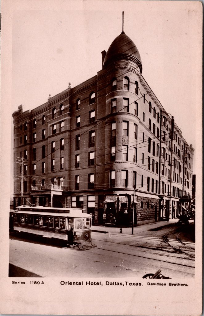 THE ORIENTAL HOTEL : TROLLEY : DALLAS, TEXAS : RPPC : (1912)