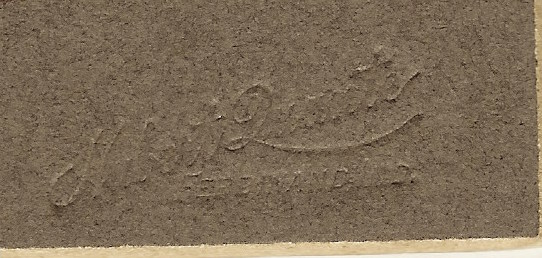 This photograph features two musicians posing for their portrait at the Jarrard Studio in Fort Wayne, Indiana. According to an inscription on the reverse of the photograph, the violinist is named “Louie Dudenhofer” and he is the “Brother to Jeanette”. The second musician is unidentified and he is holding his accordion. The photographer, Harry R. Jarrard was born in Indiana in 1852. He is known to have been a photographer from at least 1889 through 1910. He is thought to have arrived in Fort Wayne in 1886 and in 1888 married Emma Short. His photography business in Fort Wayne occupied several locations during its existence. SOLD