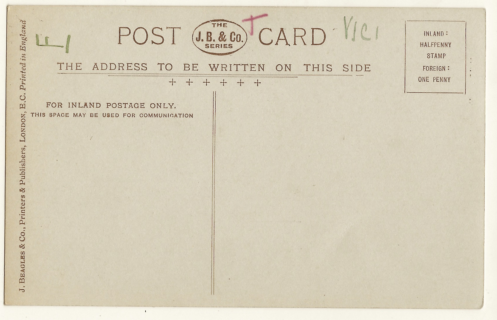 Postcard 23 is uncommon. The card was published by J. Beagles & Co. as part of a series (No.365). The postcard is of British origin (SOLD)