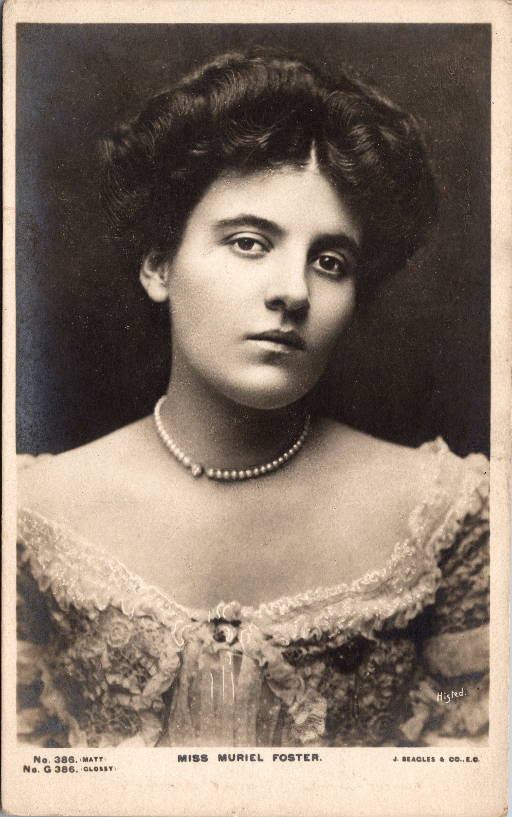 This vintage real photo postcard features English contralto, Muriel Foster (1877-1937). Foster and her twin sister, Hilda, were trained at the Royal College of Music in London. In 1896, he made her debut in the production of “King Saul”. In 1899, the sisters performed in a series of duets. In 1900, Hilda retired after getting married. Muriel, who had the command of several languages, continued her singing and had a very successful international opera career. Muriel was photographed for this portrait by Ernest Walter Histed (1862-1947). Histed was born in England but achieved his success as a photographer in Chicago, and later, in Pittsburgh. He then returned to England and opened a photography studio there. His subjects there included Clara Butt (Opera Star) Pope Pius X, and the Empress of Germany. Histed returned to the US and opened a studio on Fifth Avenue in New York City. He later moved to Palm Beach, Florida and continued his profession until 1934. The Museum of the City of New York has a large collection of his work. The National Portrait Gallery (England) has 32 of his photographs in their collection. This postcard was published by London’s J. Beagles & Co. as part of a series (No. G386).The company was started by John Beagles (1844-1909). The company produced a variety of postcards including an extensive catalog of celebrity (stage and screen) portrait postcards. After Beagle’s death, the business continued as J. Beagles & Co. until it closed in 1939. SOLD