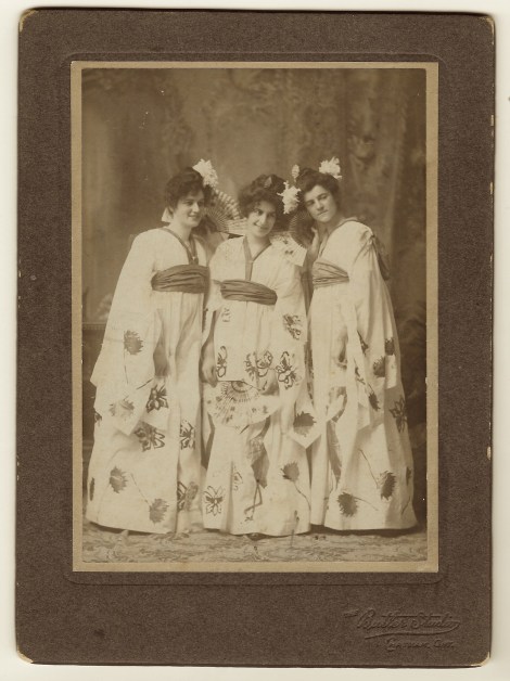 This vintage photograph features three women wearing pretty kimonos and flowers in their hair. Judging by their smiles, they seem to be having a good time as they pose for their portrait at the Butler Studio in Chatham, Ontario, Canada. There was a time when wearing this Japanese style clothing was quite popular in parts of the United States and Canada. This is apparent because it is not uncommon to find cabinet card era photographs with Western subjects wearing kimonos. In fact, you can view other photographs of Western women dressed in kimonos in the Cabinet Card Gallery’s collection. Place the word “kimono” in this blog’s search box to see other photos exemplifying this impact of Japanese fashion on American/Canadian fashion around the early twentieth century. The photographer of this image is J. S. Butler who operated as a photographer in Chatham from 1874 until 1902. A number of his photographs can be found in the collection of the Chatham-Kent Municipal Museum. A photo of Mr. Butler can be seen below.