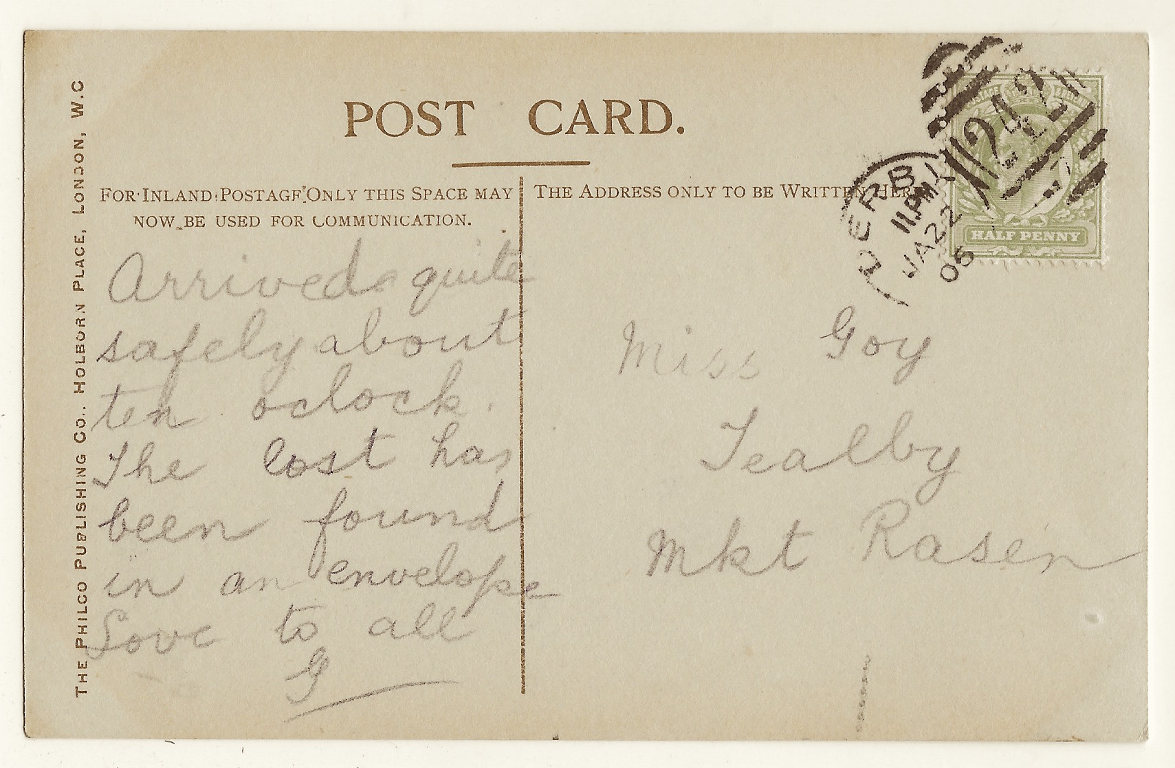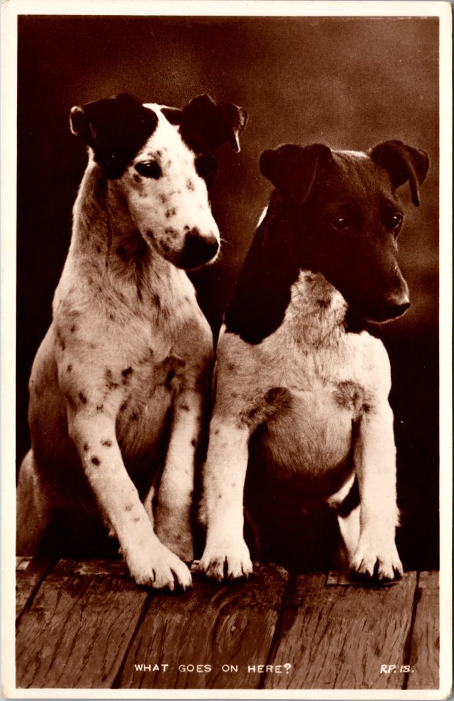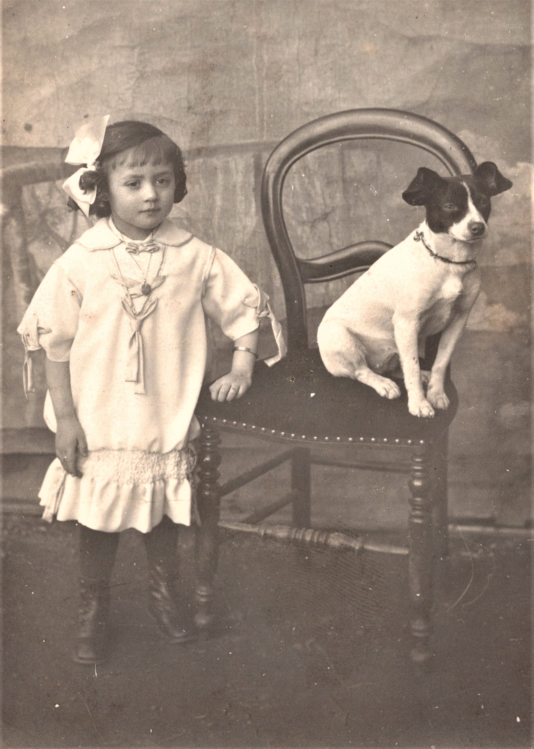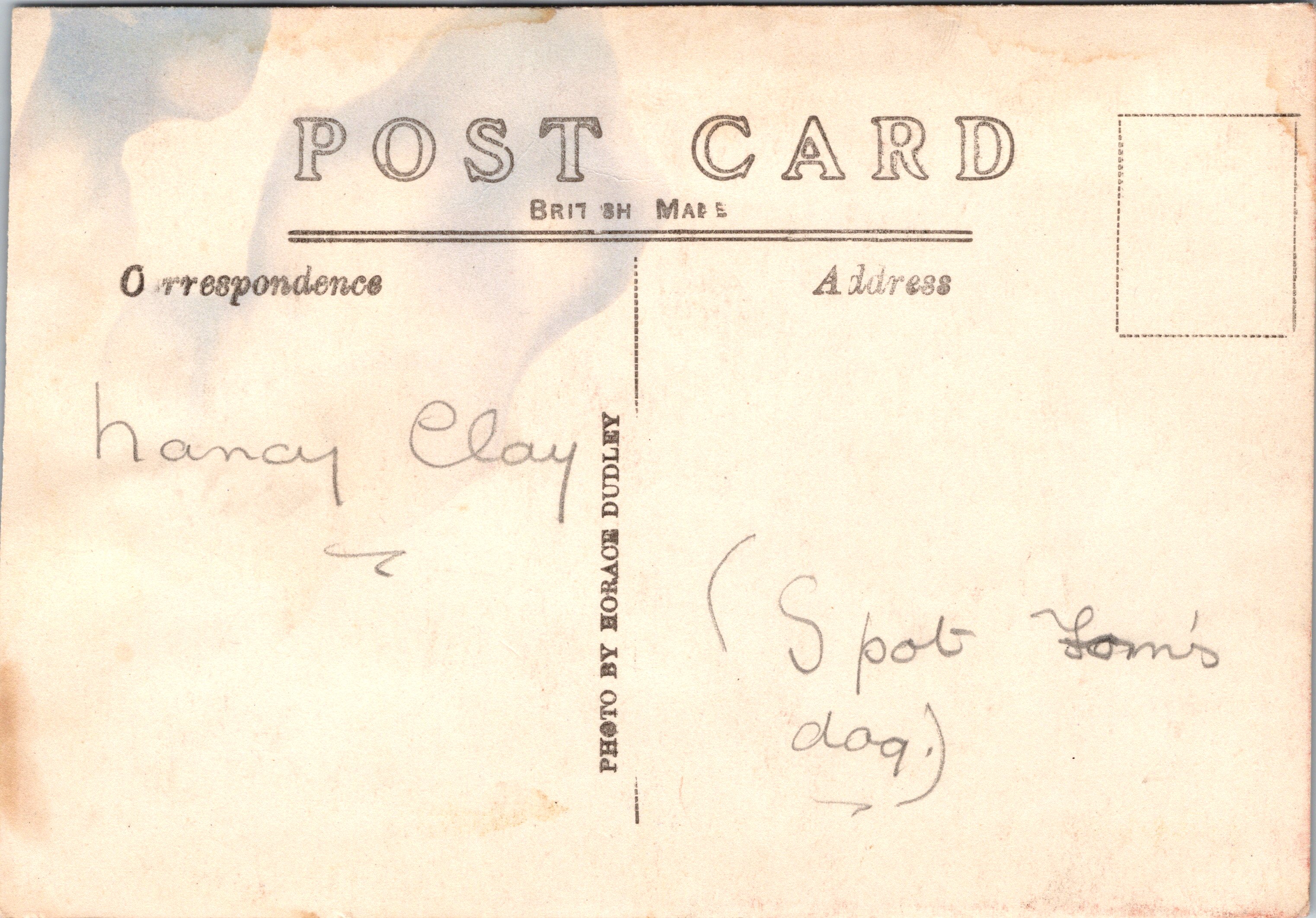 This vintage real photo postcard features pretty stage actress and singer, Delia Mason (1880-1980). She is posed with a dog that appears to be a Jack Russell Terrier. There is little biographical information about her readily available online. She was a native of Coventry, England. There are seven portraits of Mason that can be found in Britain’s National Portrait Gallery. Her first professional appearance was in “Three Little Maids” (1902) at the Apollo Theatre in London.