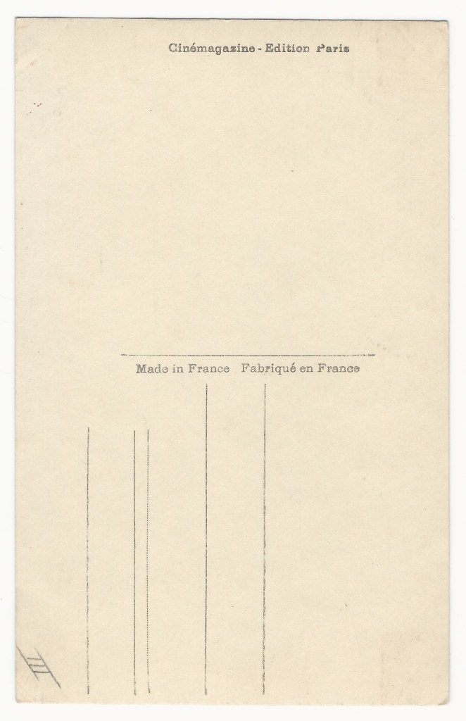 Postcard 3 was published by Iris Verlag as part of a series (No. 620). On the bottom right corner of this postcard is the logo for Sascha-Films. The company was the largest Austrian film production company of the silent film and early sound film era. The film company was established in 1910 in Bohemia and in 1912 it moved to Vienna. Sascha remained in business through the 1960’s although it went through many changes of ownership and company names through the decades. (SOLD)
