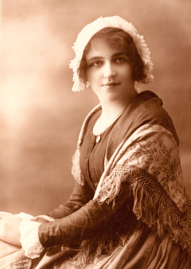 his French vintage risque real photo postcard features a pretty young woman modeling for an artist. This photograph is meant to titillate. The young woman is scantily dressed. More of her body is exposed than covered. The previous owner of this portrait postcard identifies the woman as a Parisian dancer named “Jenny Bell”. After preliminary research, I have been unable to confirm this identification. This risque photographic portrait was published by celebrated photographer, Jean Agelou (1878-1921), as part of a series (No.035). Agelou was a French photographer of the 1910’s and 1920’s who is best known for his erotic and nude photographs. He was born in Egypt and not much is known about his private life. Agelou generally used models between the age of 20 and 24 years-old. Although the 1900’s was the “golden age” of erotic photograph, photographers who took such risque photos had to use discretion. As a result, Agelou signed his work “JA”. In 1908, nudity in photographs was banned in France and photographers had to cover nude women images with strategically placed undergarments or other materials. Nude images had to circulate on the down low. They were sent in the mail inside of envelopes. Jean Agelou died in 1921; the result of a car accident. His brother George, who managed Jean’s business, also was killed in the crash. SOLD
