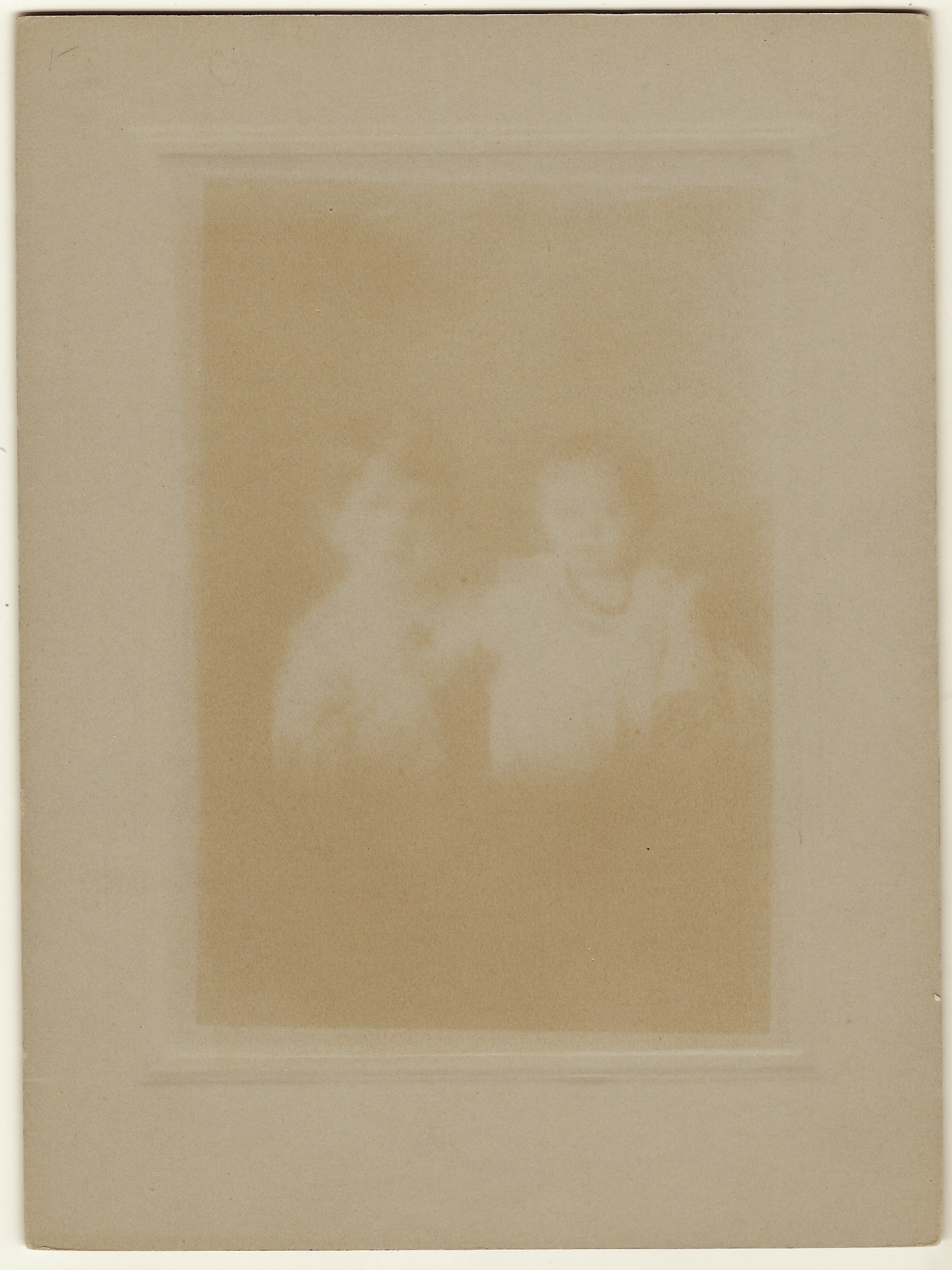 This cabinet card features two young girls participating in a religious ceremony, Note the religious symbols on the table between them. The girls are dressed in their finest clothing and adorned with flowers. The photograph was produced by John D Strunk of Reading, Pennsylvania. Several of his images can be found in the cabinet card gallery and to learn more about him, and to view the other photographs, click of the category “Photographer: Strunk”. Perusal of his other images reveal that Mr. Strunk was an excellent photographer. The image above has great clarity, the subjects are well posed, and the props are perfectly placed.