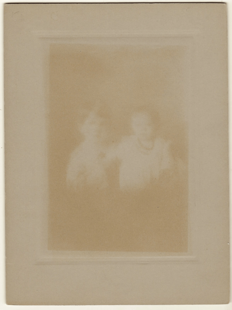 This cabinet card features two young girls participating in a religious ceremony, Note the religious symbols on the table between them. The girls are dressed in their finest clothing and adorned with flowers. The photograph was produced by John D Strunk of Reading, Pennsylvania. Several of his images can be found in the cabinet card gallery and to learn more about him, and to view the other photographs, click of the category “Photographer: Strunk”. Perusal of his other images reveal that Mr. Strunk was an excellent photographer. The image above has great clarity, the subjects are well posed, and the props are perfectly placed.