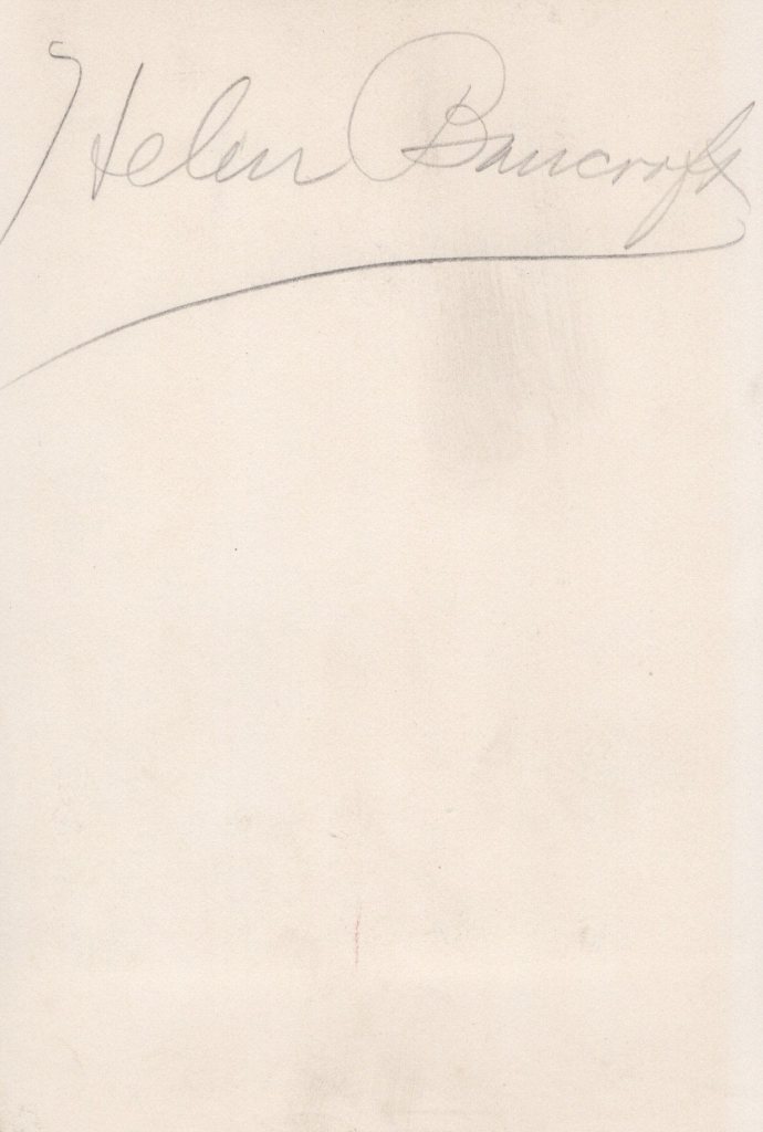 This cabinet card photograph features stage actress, Helen Bancroft. Her portrait was photographed by esteemed celebrity photographer, Jose Mora. She is quite pretty and appears to be dressed in costume from one of her theatrical performances. Bancroft made three Broadway appearances between 1904 and 1911. “Music and Drama” (1892) wrote about Bancroft’s debut in the “Hunchback”, It appears to have been her first major role. The reviewer quotes another reviewer who stated she had “an attractive presence, pretty face and mellow voice(that) did much to win her audience”. Theatre Magazine (1905) had a less complimentary comment about Miss Bancroft. Apparently, she had “resigned” from a play because one of her costumes was an “unbecoming color”. (SOLD)