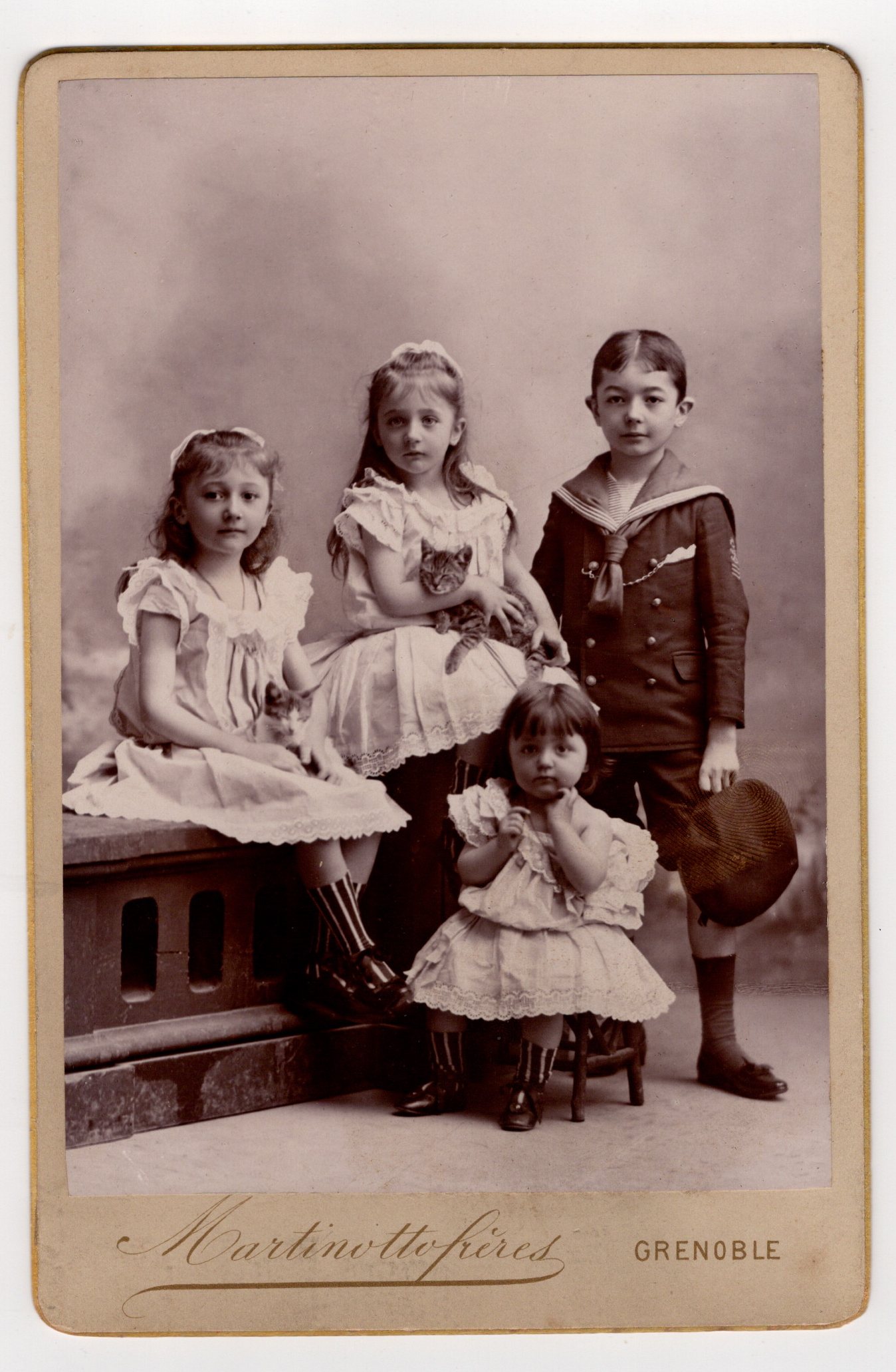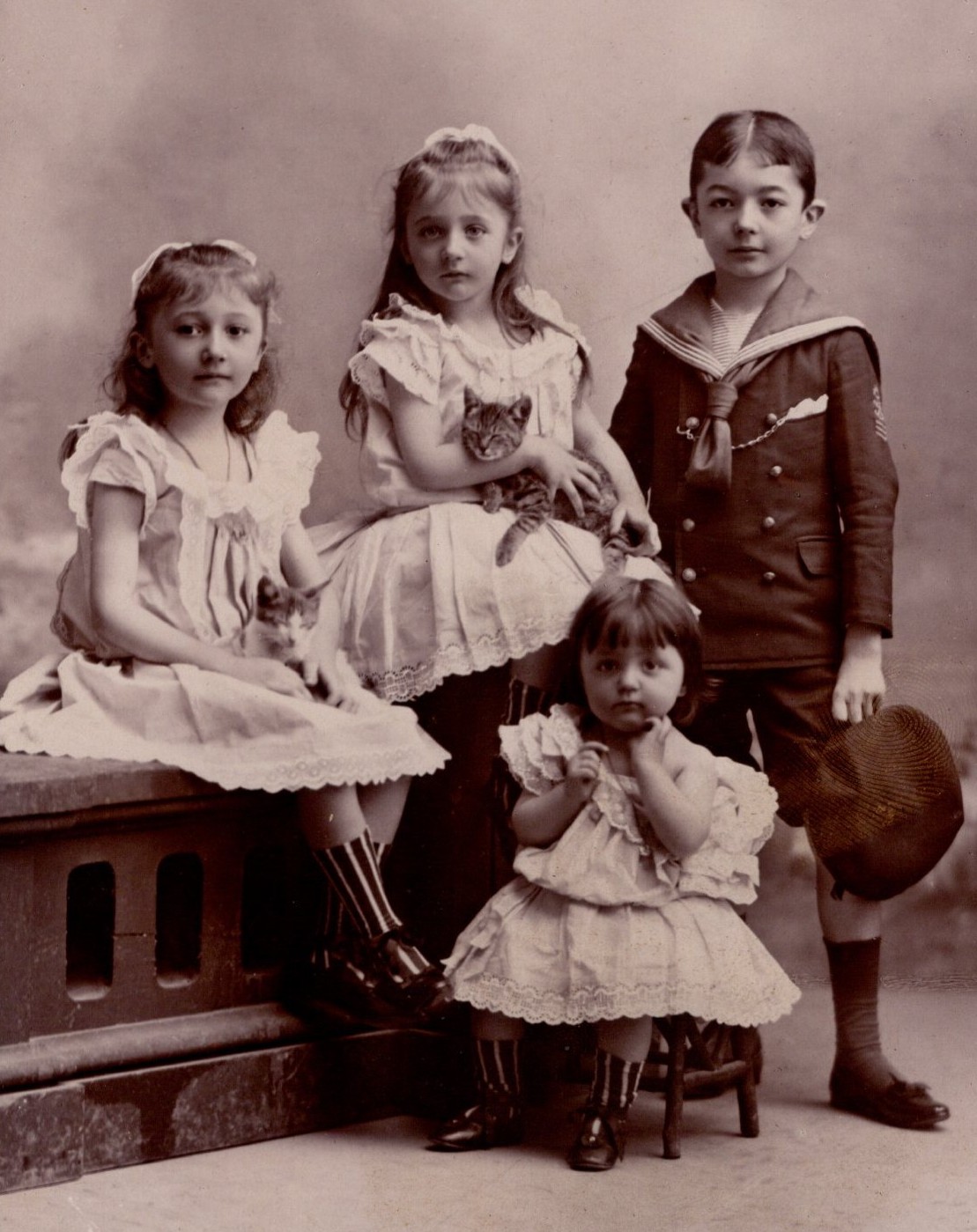 This cabinet card image captures two very cute kittens sitting for their portrait at A. M. Powers studio in Schenectady, New York. One wonders how many photographs Mr Powers had to take before producing this very special cabinet card. The photographer, A. M. Powers is mentioned in the book, The History of County of Schenectady. It states that he resided in Schenectady beginning 1873 and opened his photographic gallery in 1879.