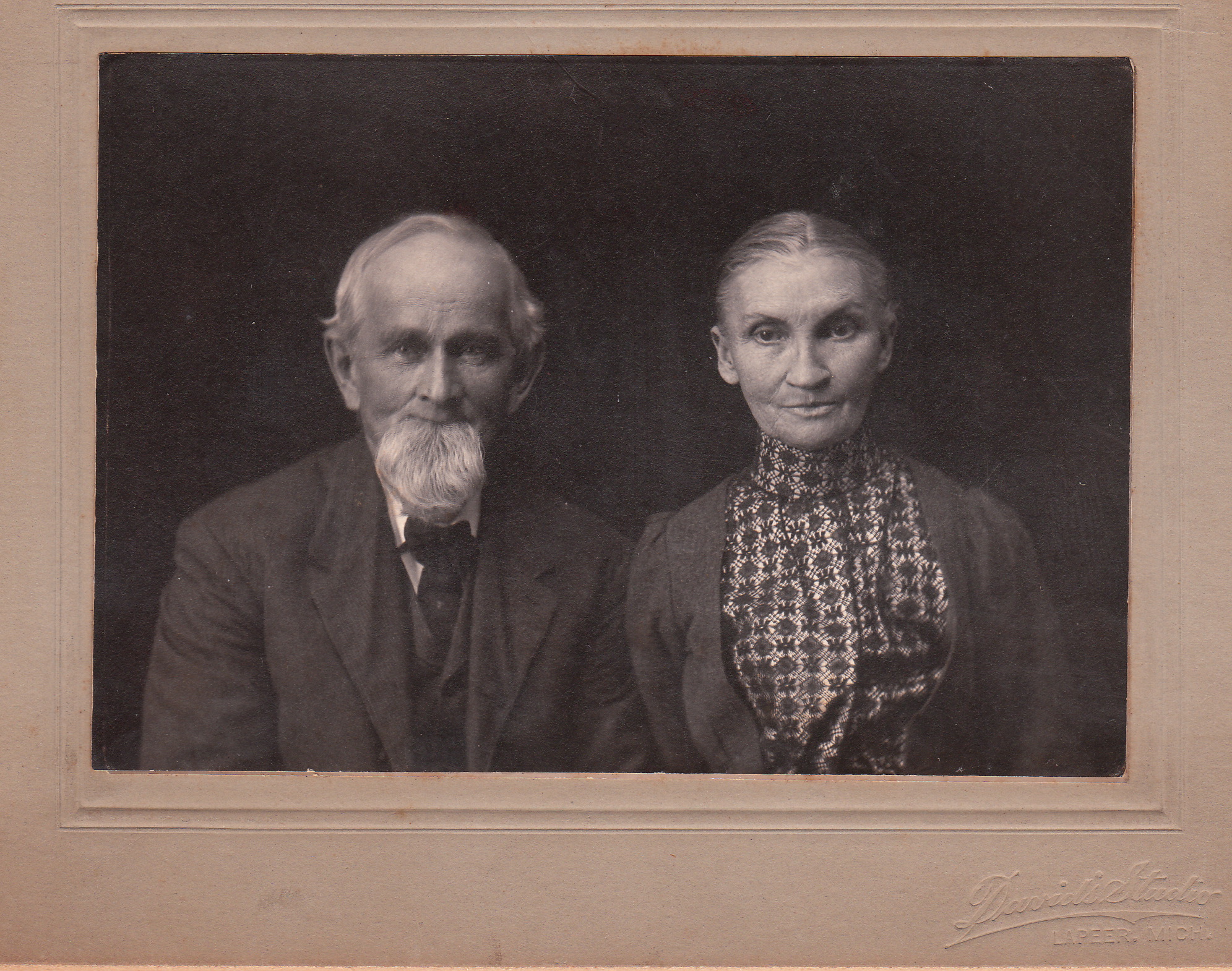 This photograph features a wonderful looking elderly couple photographed by David’s Studio in Lapeer, Michigan.