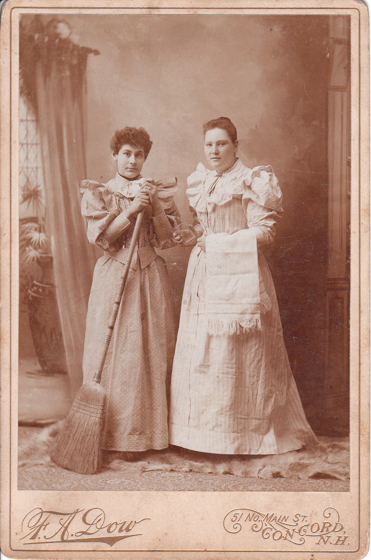 This vintage real photo postcard features a young black boy wearing coveralls and a young girl dressed in a maid’s uniform. The boy is holding a feather duster and looking at the girl who standing on a table and is in deep concentration as she brushes off a sculpture. This photographer produced this image in a tongue and cheek manner. A caption on this postcard states “Valet de Chambre et Soubrette” (valet and maid). SOLD