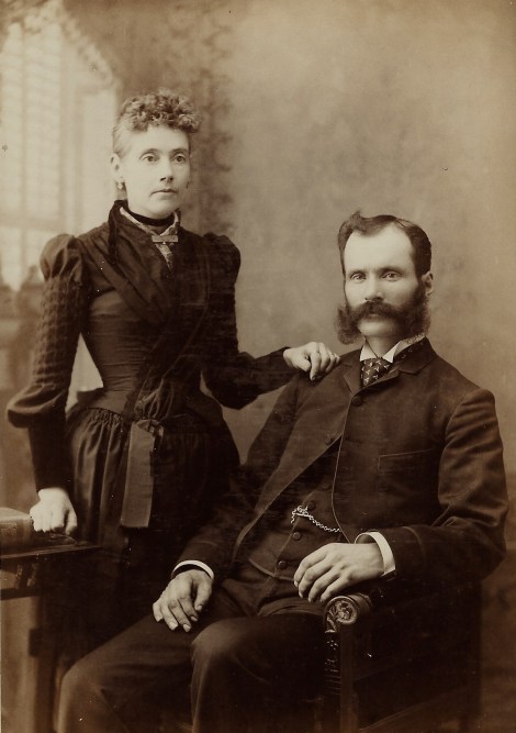 This cabinet card features a well dressed couple posing for their portrait at the Hayden studio in Lowell, Massachusetts. The gentleman has wonderful mutton chops with a connecting mustache. The photographer of this photograph is Marshall M. Hayden (1847-1928). He operated a studio in Lowell between 1867 and 1900, according to one Massachusetts historical site. However, my preliminary research found that he actually is listed as a photographer in the 1880 through 1920 US census. Interestingly, he was also listed in the 1926 Lowell business directory as a photographer (he was 79 years old). Earlier in his career he worked as a bread deliveryman (1870 US Census). Hayden was a veteran of the Civil War. He served in Company H of the 6th Massachusetts Infantry. He served nine months in 1862 and 1863. He was a private and a musician. (SOLD)