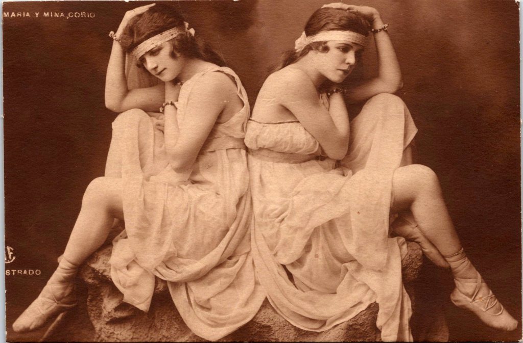 This vintage real photo postcard features Maria and Mina Corio. They are Mexican divas. This postcard was published by CIF Registrado. SOLD