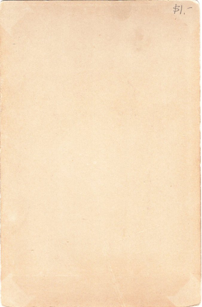 This cabinet card portrait features a pretty teenage girl posing at the Hennigar studio in Middletown, Connecticut. She is well dressed and is adorned with flowers. She is wearing a ring and holding a feathered fan. This photograph presents a sharp image of the young lady and the dark background contributes to that sharpness. The photographer directory “Langdon Road” lists a number of photographers with the name “Hennigar” that worked in the Middletown area. There was a Hennigar studio in Lambertsville, New Jersey in the 1870’s. A studio called “Hennigar Brothers” operated in Middletown from at least 1892 through 1901. Who were the principals of Hennigar Brothers studio? The answer is unclear but this is what is known. George Wainwright Hennigar (1832-1910) was a photographer in Middletown in the 1860’s and 1870’s and is listed as a photographer there in the 1900 census. The New York Public Library has a stereo card photograph by George in it’s collection The photo captures a damaged steam ship after a collision with a bridge. John W. Hennigar was located in Lambertsville before moving his business to New Rochelle, New York. He was listed in the New York City directories of 1867 and 1868. Morton W. Hennigar (1855-1927) had a studio in Middletown between 1877 and 1909. Charles L. Hennigar (1842-1897) was a photographer in Middletown from at least 1868 through 1872. In 1876 he is listed in the Brooklyn, New York directory as a photographer. The 1880 US census reports that he was a photographer in New York City. It is likely that George W. Hennigar is the photographer that took this photograph. He was present in Middletown around the time that this photograph was taken (1880’s or 1890’s). SOLD