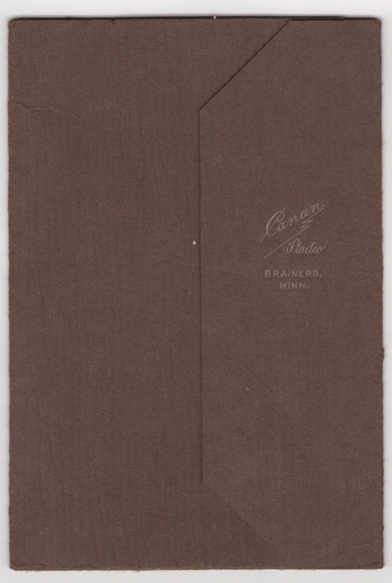 This vintage folder photograph features a portrait of a young pretty Red Cross nurse. Note her detailed uniform. She was photographed by the Canan Studio in Brainerd, Minnesota. The photographer was Marie Ann Canan (1869-1944), a female photographer in Brainerd for many years. She operated a studio at 209 1/2 South Seventh Street (1901-1902) and at 616 1/2 Front Street (1905-1925). Both of these studios were in Brainerd. Female photographers were the exception, not the rule, during the time this photograph was taken. SOLD