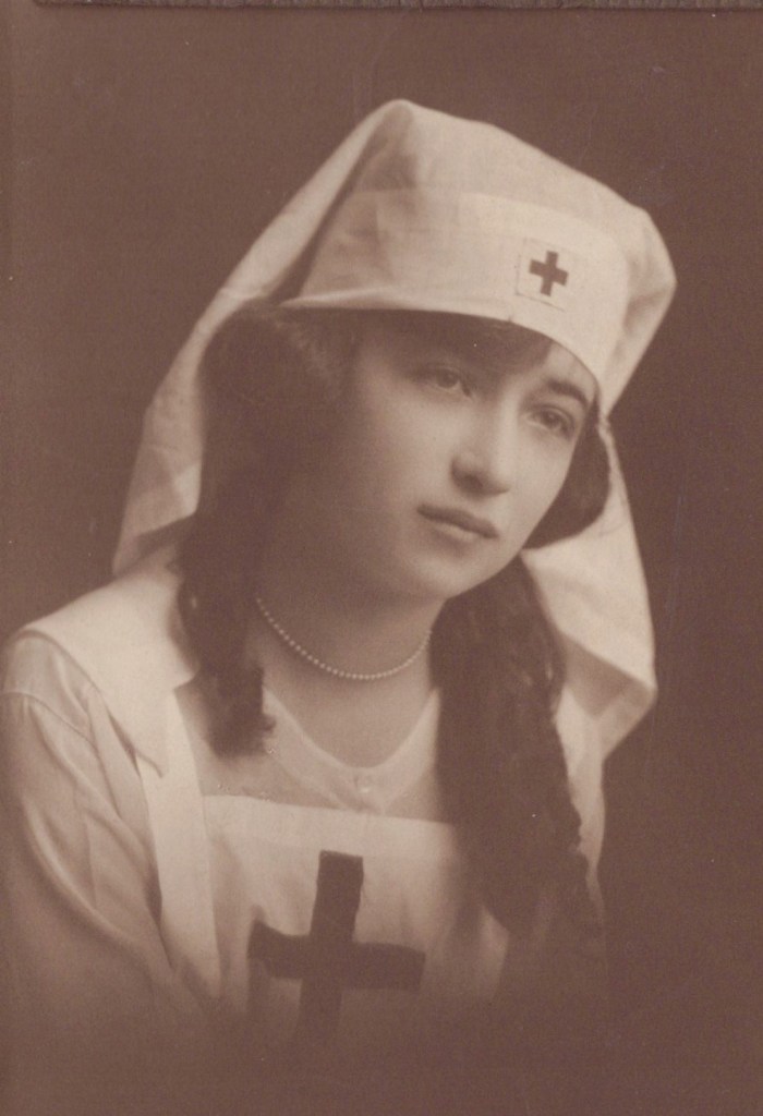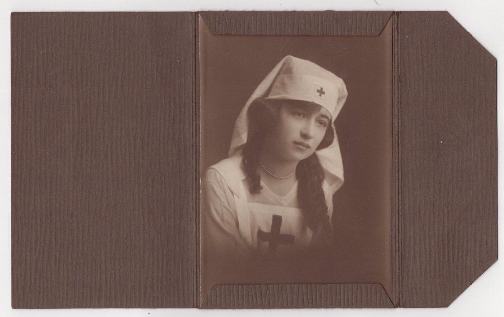 RED CROSS NURSE : FEMALE PHOTOGRAPHER : VINTAGE FOLDER PHOTO : BRAINERD, MINNESOTA