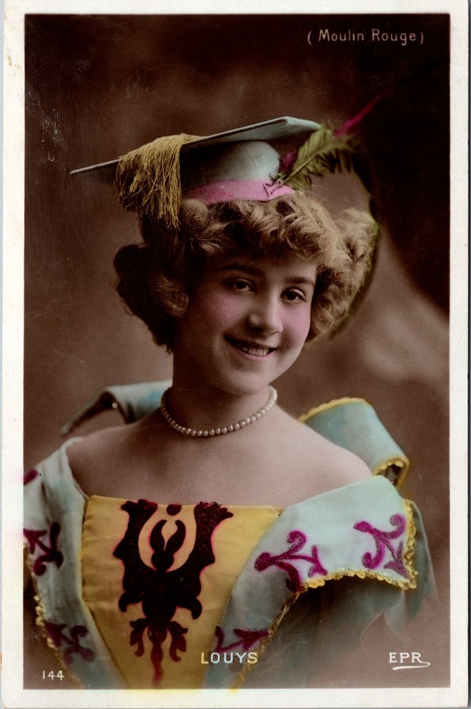 Postcard 1 features actress Paulette Del Baye (1877-1945).This French actress, singer, dancer and vaudevillian was born in Cuba. In 1904 she performed in the production of “Sleeping Beauty” at the Moulin Rouge. She received excellent reviews. She performed on stage at least from 1906 through 1918. She also appeared in four silent films in 1921. One of these films was a Sherlock Holmes adventure. In 1909 she was accused of being involved in a plot to restore the French monarchy. This risque photo postcard was published by SIP as part of a series (no.1322). Miss Del Baye’s portrait was taken by esteemed celebrity photographer Paul Boyer. His studio was located in Paris, France. SOLD