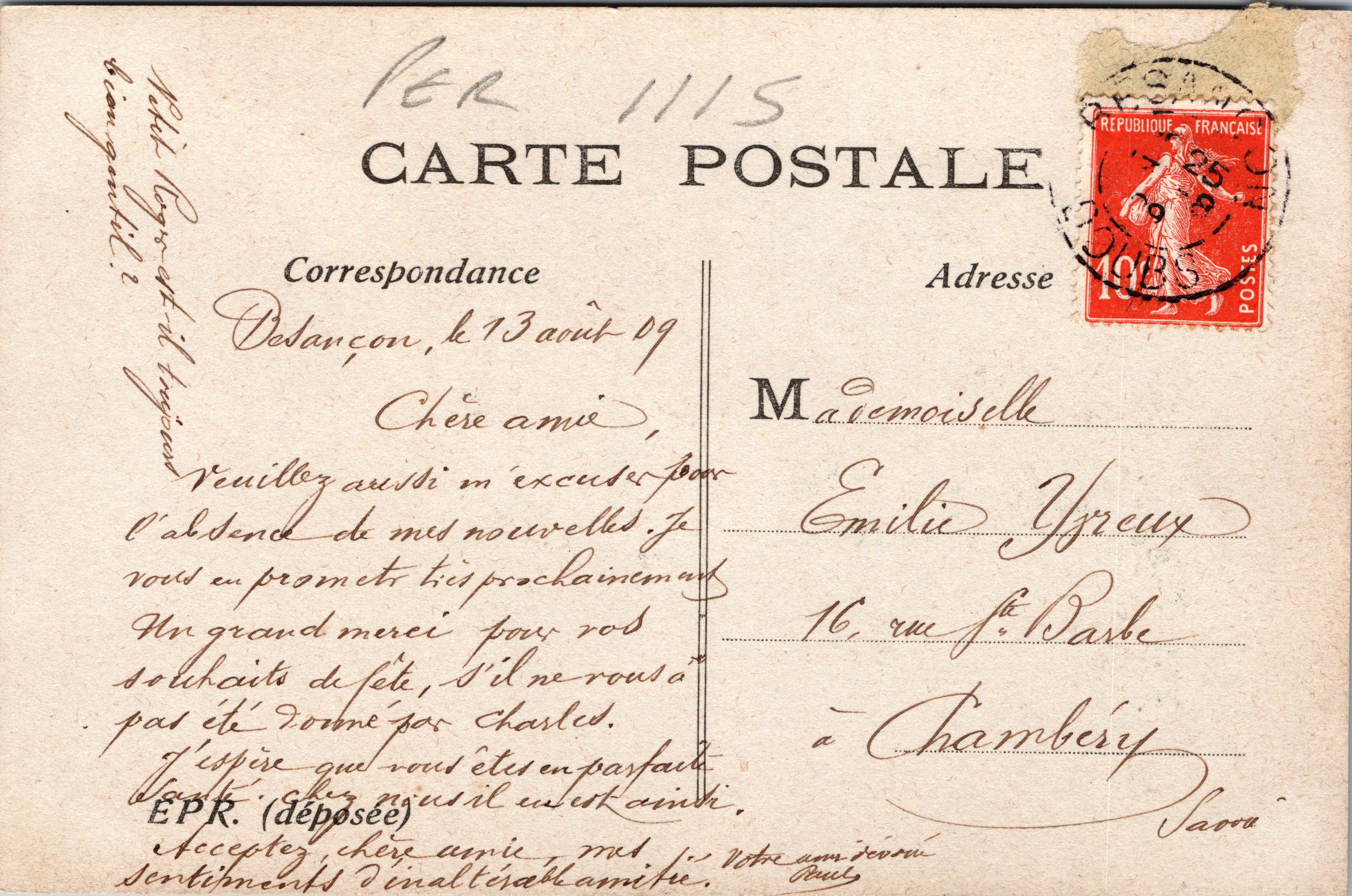 Postcard 2 was published by VBC as part of a series (no.3036). Miss Del Baye’s portrait was taken by esteemed celebrity photographer, the Sazerac studio.The studio was located in Paris, France. This image was created by a photographic process called “Emaillographie”. It is interesting that the first five letters of the technique is “Email”. SOLD