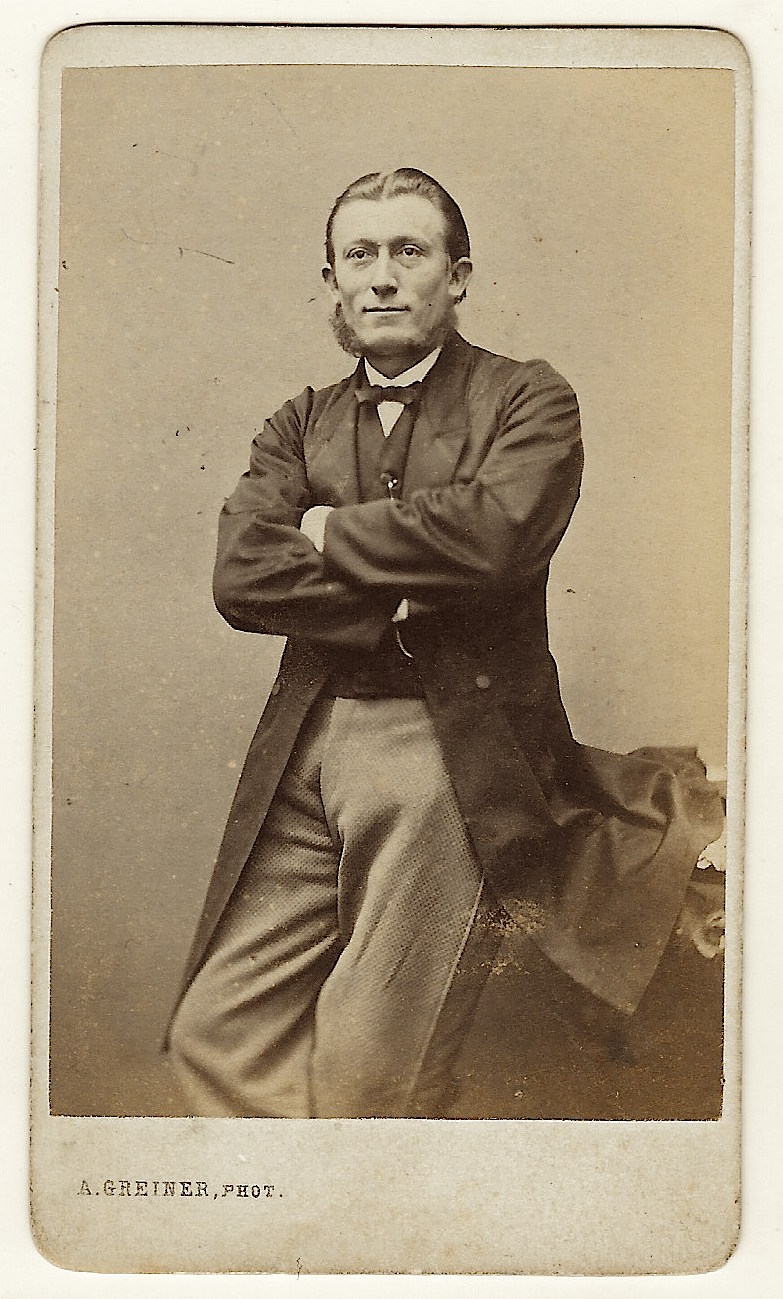 Offered here is a striking and highly detailed cabinet card photograph of a distinguished older gentleman, taken by the celebrated New York photographic firm Dana & Hargrave, located at 1183 Broadway, New York City. The image likely dates to the 1890s. The subject is dressed in formal 19th-century attire, wearing a three-piece wool suit with a buttoned vest, a high-collared white shirt, and a neatly tied bow tie. His long, full sideburns and clean-shaven chin—a style known as “friendly mutton chops”—are an impressive feature, accentuating his age, dignity, and gravitas. He wears round spectacles perched low on his nose, giving him a scholarly or ministerial air. His expression is serious and contemplative, with a quiet confidence that reflects the formality of the period. The photograph is crisp and beautifully lit, with sharp contrasts and soft tonal gradation typical of high-quality late 19th-century studio work. This portrait was taken by Dana & Hargrave, a respected photographic studio based at 1183 Broadway, New York, active in the 1880s–1890s. The primary name, Dana, refers to Edward C. Dana (1852-1897), a prominent 19th-century photographer who specialized in portraiture of the elite and artistic figures of New York society. Dana was well-known for his careful composition and the lifelike quality of his cabinet cards. He developed an interest in photography during the Civil War after seeing conflict images displayed publicly in Boston. He later trained with Boston photographer James W. Turner. In 1875, he opened his first studio in Brooklyn, eventually relocating to Manhattan, where he established a gallery at 14th Street and 6th Avenue. By the late 1880s, his innovative approach—particularly his rejection of painted backdrops—brought national attention and awards, including a Gold Medal in 1887. Further honors followed, such as a gold medal from the Photographers’ Association of America in 1891, an award at the 1893 World’s Columbian Exposition, and a bronze medal in 1894. With growing prestige, he moved to 872 Broadway. Embracing advancements in halftone printing, he worked closely with leading printers and shifted his business model from selling portraits directly to the public to licensing images to editors and publishers, often with financial backing from producers seeking publicity. There is an inscription on the reverse of the photograph. The inscription identifies the subject as “Uncle John Roberge, younger brother of Grandpa Lionel Roberge”. (SOLD)