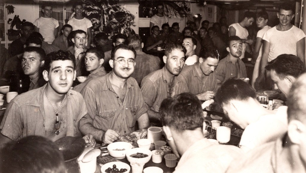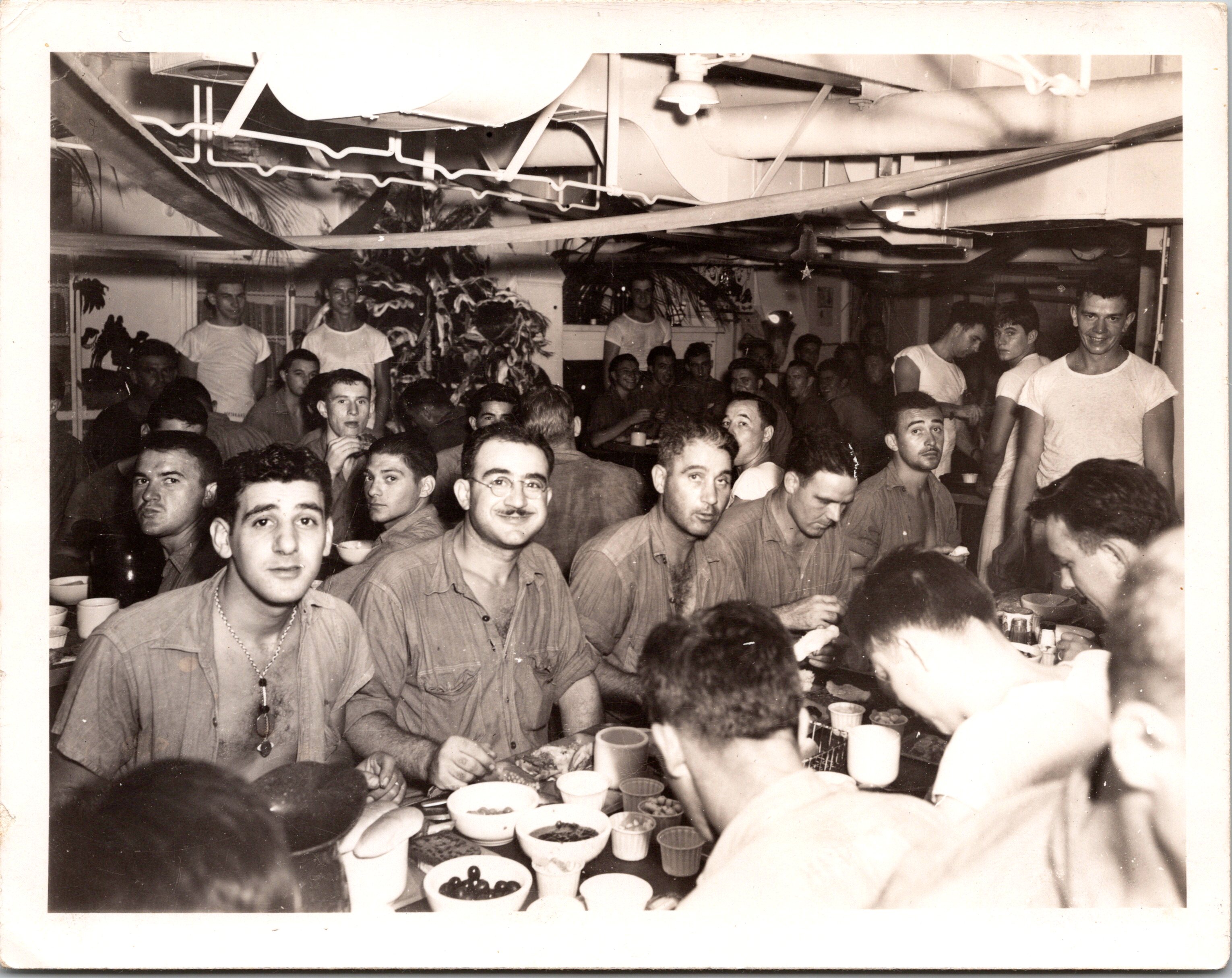 XMAS DINNER : USS CEBU : NAVY : SAILORS : WORLD WAR ll : 1940’s : VINTAGE PHOTO