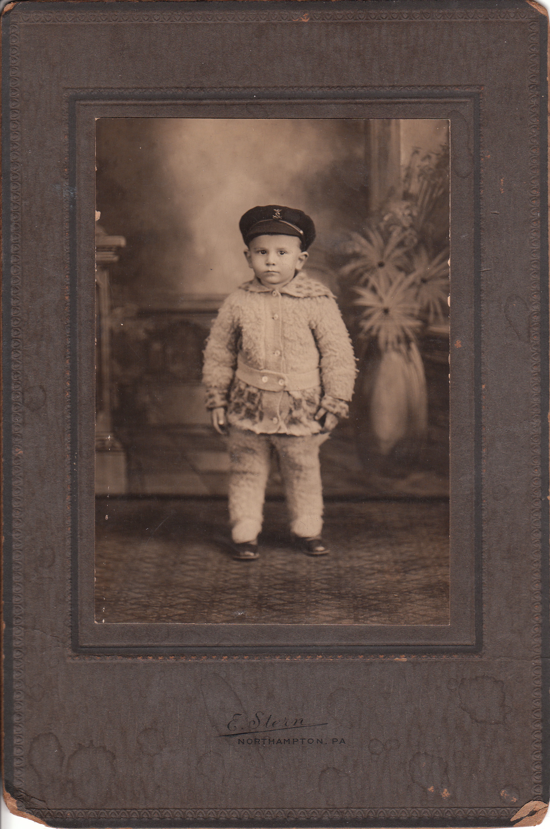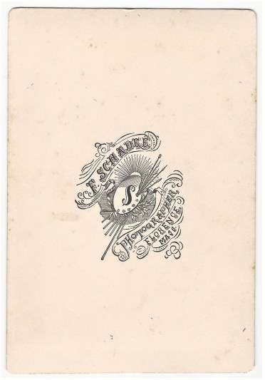 The young woman in this cabinet card portrait is tall, thin, and wearing a dark dress. She is very well dressed. The woman is tightly corseted, which is typical for the era of this photograph. She is holding a folded fan. This photograph was taken in Florence, Massachusetts at a gallery operated by Ferdinand William Schadee (1840-1901). Schadee was born in Bavaria, Germany. I found no record of when he arrived in the United States. In 1869, he married Eliza A Schadee and the couple eventually had at least three children. Schadee was a Mason. A publication entitled “The History of Florence, Mass.” (1895) reveals that Schadee established his gallery there in 1885. Prior to that time, he ran a studio in Northampton, Mass. That studio was operated under the name of “Hardie & Schadee”. The 1880 US Census lists Schadee as a photographer as does a number of editions of the Northampton and Easthampton directory. He was listed in the directory up to 1901, indicating that he was working as a photographer until his passing. (SOLD)