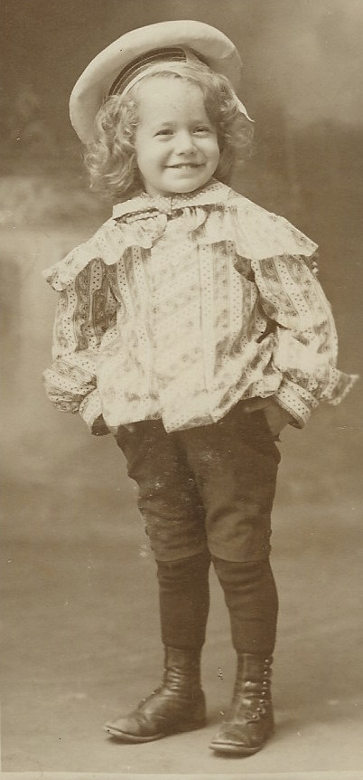 SAILOR BOY_0006A ten year-old boy named Horace H. Justice Jr. poses proudly in a sailor suit at the studio of Anderson &  Hartshorn in Dayton, Ohio. Horace’s naval cap displays the name “Dewey” rather than the more typical ship name. Admiral George Dewey (1837-1917) was a US naval officer best known for his victory at the Battle of Manila Bay during the Spanish American War. He came home to the United States and was received as a conquering war hero. Young Horace is clearly paying tribute to Admiral Dewey. The Spanish American War era was a time marked by a escalation of patriotism in the United States and this image provides an illustration of this nationalistic fervor. It is also possible that Horace’s father may have served with Admiral Dewey and that Horace Jr. is emulating Horace Sr.. Initial research found a  Horace J. Justice living in Dayton. The 1900 US census reveals that Justice was married to Mattie Justice 1885) and at the time of the census, they had a twelve year old son also named Horace.  Horace Justice Sr. is mentioned in many Dayton city directories from 1871 through 1909. He worked many years as a travelling salesman.  It could not be established that Horace Sr. was in the armed forces. It appears that Horace Jr was born in 1888 and died in 1948. Information was also found about the photographers. Photographer James Otto Hartshorn was a leading Dayton photographer. He was born in Ohio in 1869. A Dayton history book reveals that he was “deprived” of his parents when he was thirteen years-old and forced to live with various friends. He worked on a farm until he turned eighteen and and then moved to Dayton and for a short time worked in a cotton batting factory. In 1888 he became employed in a photography studio where he learned to become a very skilled photographer. In 1891 he married Ella M. Huesman of Dayton.  In 1894  Hartshorn partnered with Charles F. Anderson and opened up the studio that produced the portrait of  Horace Justice Jr..