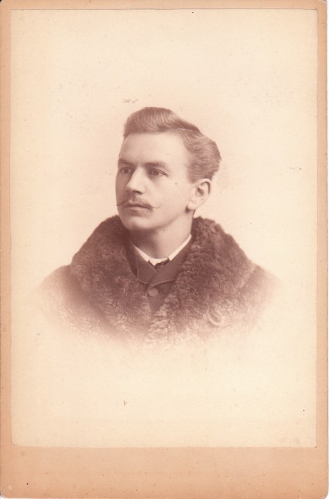 A good looking young man, adorned in a fur coat, poses for his portrait. The photographer is J. Fraser Bryce and his studio was located on 107 King Street West, in Toronto, Canada. Bryce was born in 1852 in Dundas, Ontario. After completing his education he went to Toronto and studied photography with Thomas Hunter. He supplemented his training with then acclaimed photographers, C. C. Randall of Detroit, Michigan, and J. F. Ryder of Cleveland, Ohio. In 1884, Bryce located permanently in Toronto buying Hunter’s studio. Bryce is cited in the American Annuals of Photography (1887) as a member of the executive committee of the Photographic Association of Canada.