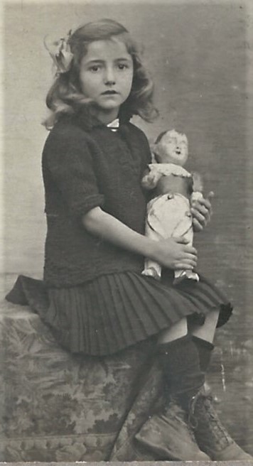A LITTLE GIRL AND HER WOODEN DOLL IN PARIS, FRANCE