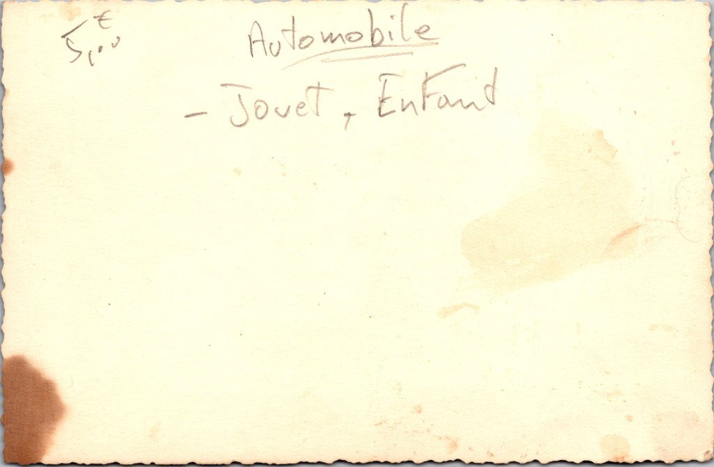 This vintage photo features a cute little boy sitting in a pedal car. He is flashing a smile at the camera. This photograph was taken at the Thuillier studio in Paris, France. The photo measures about 5 1/4″ x 3 1/2″. (SOLD)