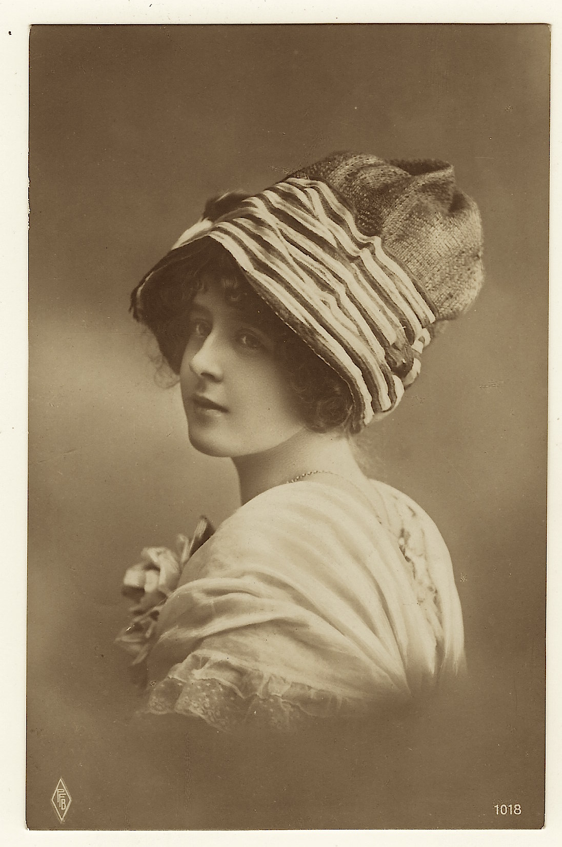 The photo portrait on Postcard 24 was taken by the Johnston & Hoffmann studio. The card is an example of an “Enamelette Postcard”. (SOLD)