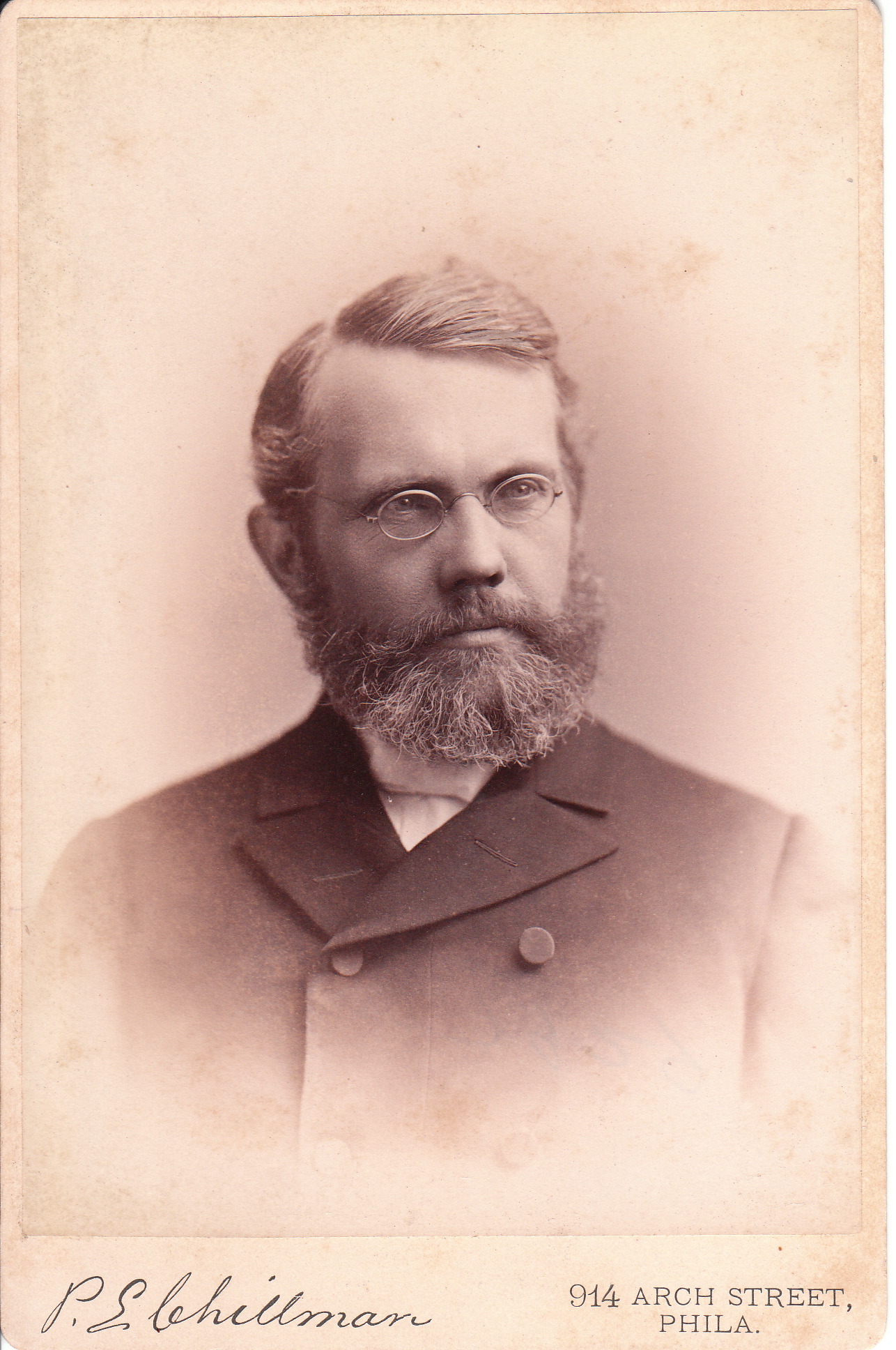 This cabinet card features a well dressed man posing for his portrait at the studio of Phillip E. Chillman in Philadelphia, Pennsylvania. This gentleman looks like an intellectual. Perhaps its his wire rim glasses and well trimmed beard that contributes to his appearance of intellectual prowess. However, I think his expressive eyes are what makes him appear so bright. His eyes can best be described as analytical. This guy is taking it all in, and processing it. To learn more about the photographer, and to view more of his photographers, click on the category “Photographer: Chillman”.