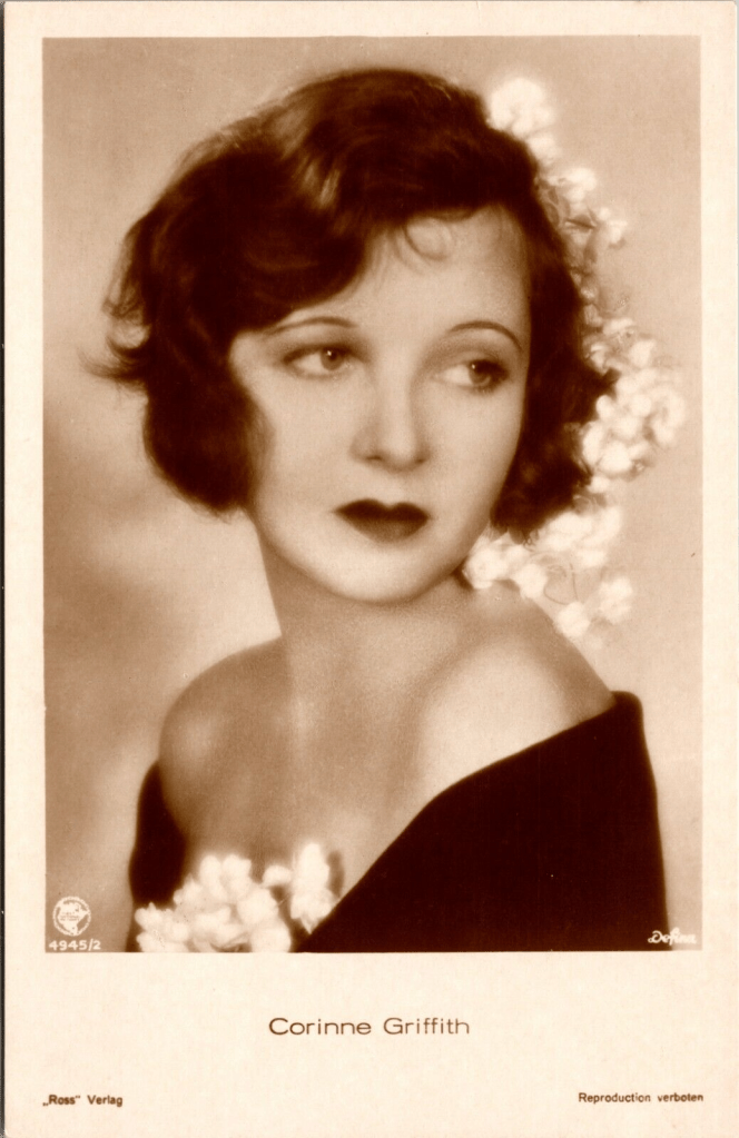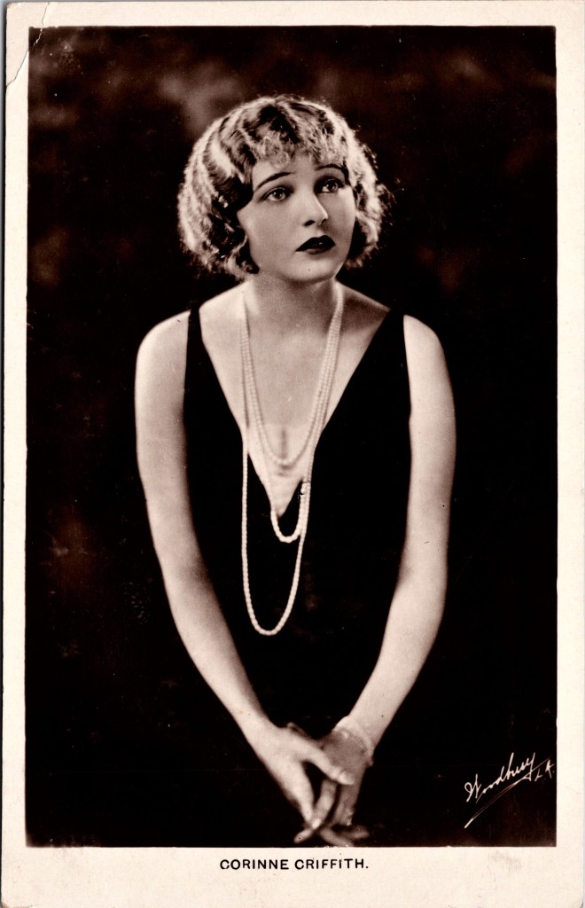 This vintage real photo postcard features Corinne Griffith, an American film actress, producer, author, and businesswoman. Besides being talented, she was considered to be one of the most beautiful actresses of the silent film era.
