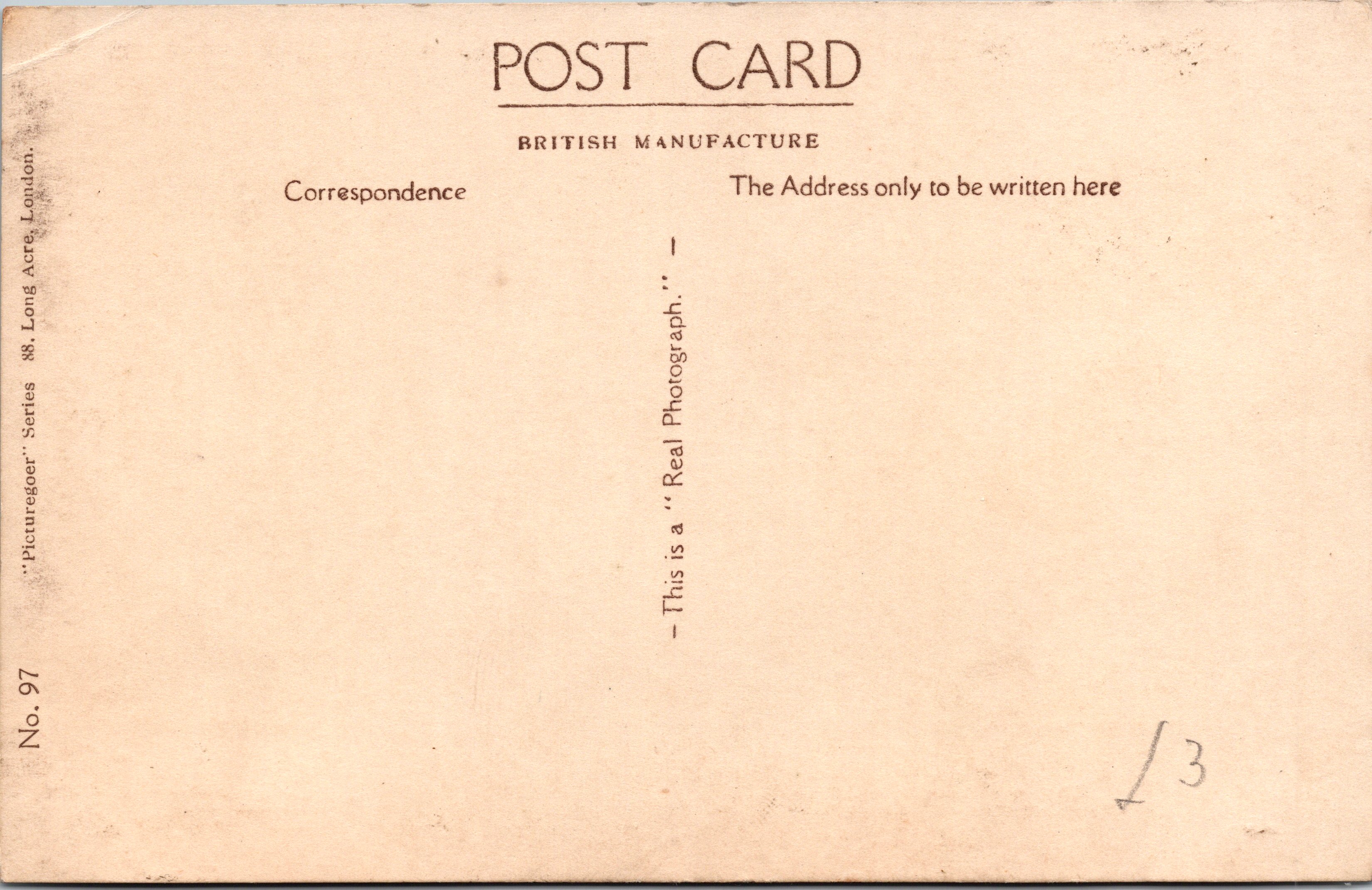 Postcard 1 was published as part of the Picturegoer Series (No.97). This postcard has a crease in it’s top left corner and is in overall fair condition. (see scans).