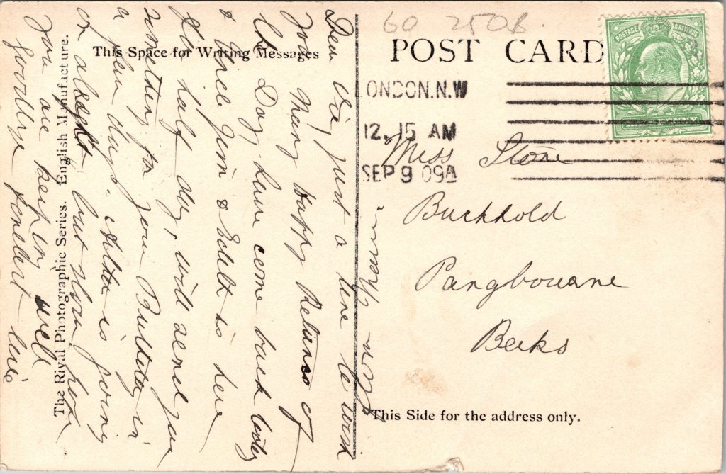Postcard 4 was printed in Great Britain by Rotary Photo. The card has a 1909 postmark, revealing that Miss James was about 19 years of age when this photo was taken. The postcard is part of a series (no.1984C). The photographer of this image is the Foulsham & Banfield studio. (SOLD)