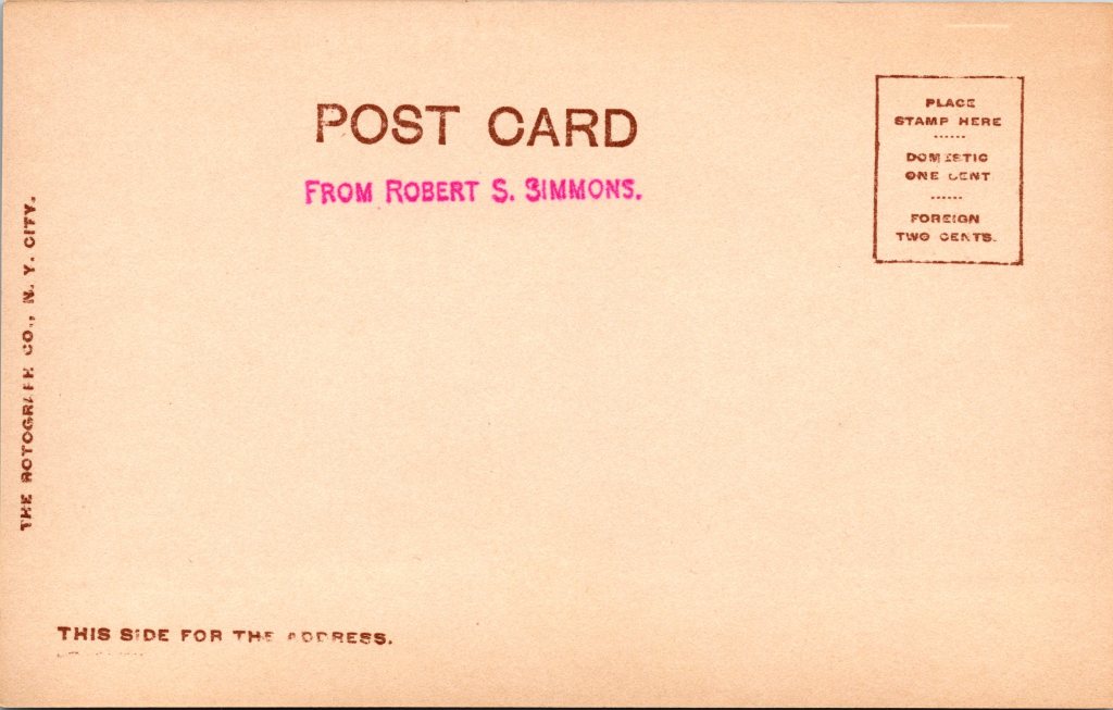 This undivided back vintage real photo postcard features American stage and screen actress, Dorothy Tennant (1865-1942). She is best known for her stage roles in the first ten years of the twentieth century. Her most prominent starring role was in the 1904 comedy, “The College Widow”. She performed in this play both on Broadway and on tour. She first appeared on stage in 1901 in the New York production of “White Roses”. The IBDb reports that she appeared in eight Broadway plays between 1902 and 1932. The IMDb states that Tennant acted in eight films between 1929 and 1938. This postcard was published by the Rotograph Company of New York City as part of a series (No.B936). The photo of Tennant seen on this card was taken by esteemed photographer Jacob Schloss. SOLD