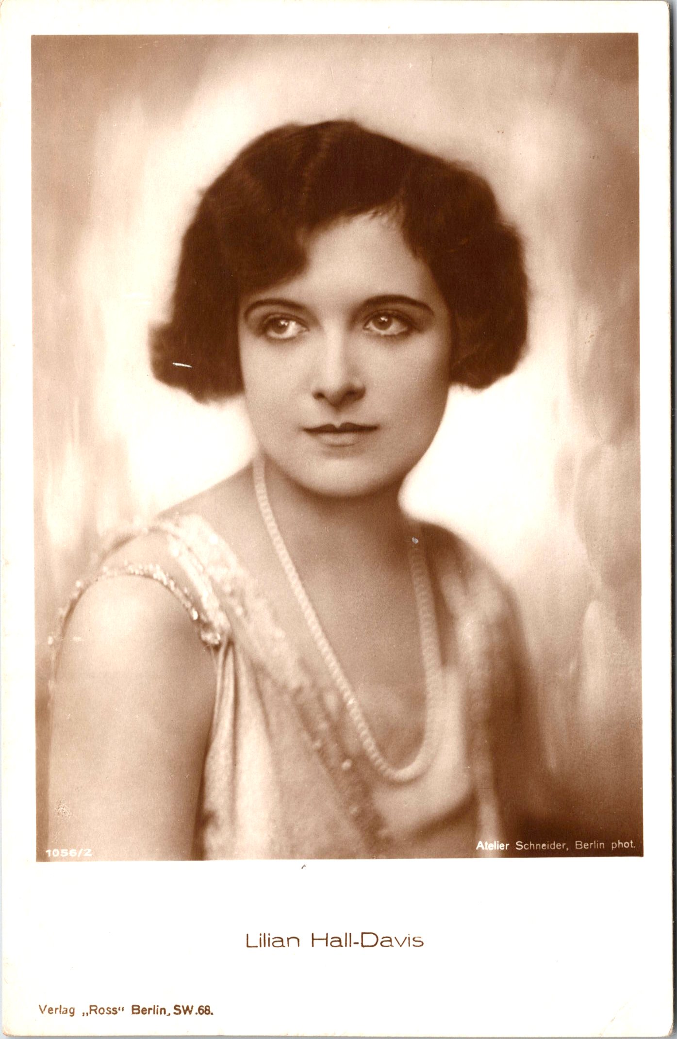 This vintage real photo postcard features British silent film actress, Lilian Hall-Davis (1898-1933). She had much success in silent films but struggled with the transition from silent to sound films. This frustration and disappointment likely led to her experiencing mental health problems and eventually to her suicide at the age of 35. She was one of Britain’s leading actresses in the 1920’s, appearing in numerous films that showcased her charm, talent and on-screen presence. She worked with some of the most respected directors of her time and was a recognized talented actress in both British and International films. She starred in both romantic and dramatic roles. She is best remembered for her performances in two of Alfred Hitchcock’s films, “The Ring” (1927) and “The Farmer’s Wife” (1928). Other notable performances were in “The Passionate Adventure” (1924), “The Ghost Train” (1927), and “The Guns of Loos” (1928). Her popularity is reflected by the number of collectible postcards (such as this one) and photographs that were published during her era. This postcard shows Miss Hall-Davis with short wavy styled dark hair. understated make-up and large expressive eyes. Her gaze is slightly off-camera, conveying a reflective, almost wistful mood. She is wearing an elegant sleeveless dress adorned with embellishments along the shoulder strap. A delicate pearl necklace adds to her refined and classic look. The photographer of Miss Hall-Davis’s portrait was Schneider, a Berlin based photographer, The postcard was published by Ross Verlag (Berlin). Ernst Schneider was one of the most celebrated studio photographers in Berlin during three decades (1900’s, 1910’s, 1920’s). He photographed many celebrities from the world of theater, opera, circuses, and film. He was also one of the most prominent fashion photographers in Berlin. In addition, he was well known for his nude photography and he published books showcasing his work in this domain. Sometime around 1908 Schneider began working with postcard publishers “Rotophot” and “Neue Photographische Gesellschaft” (NPG). In 1919 he began working with Ross Verlag. SOLD