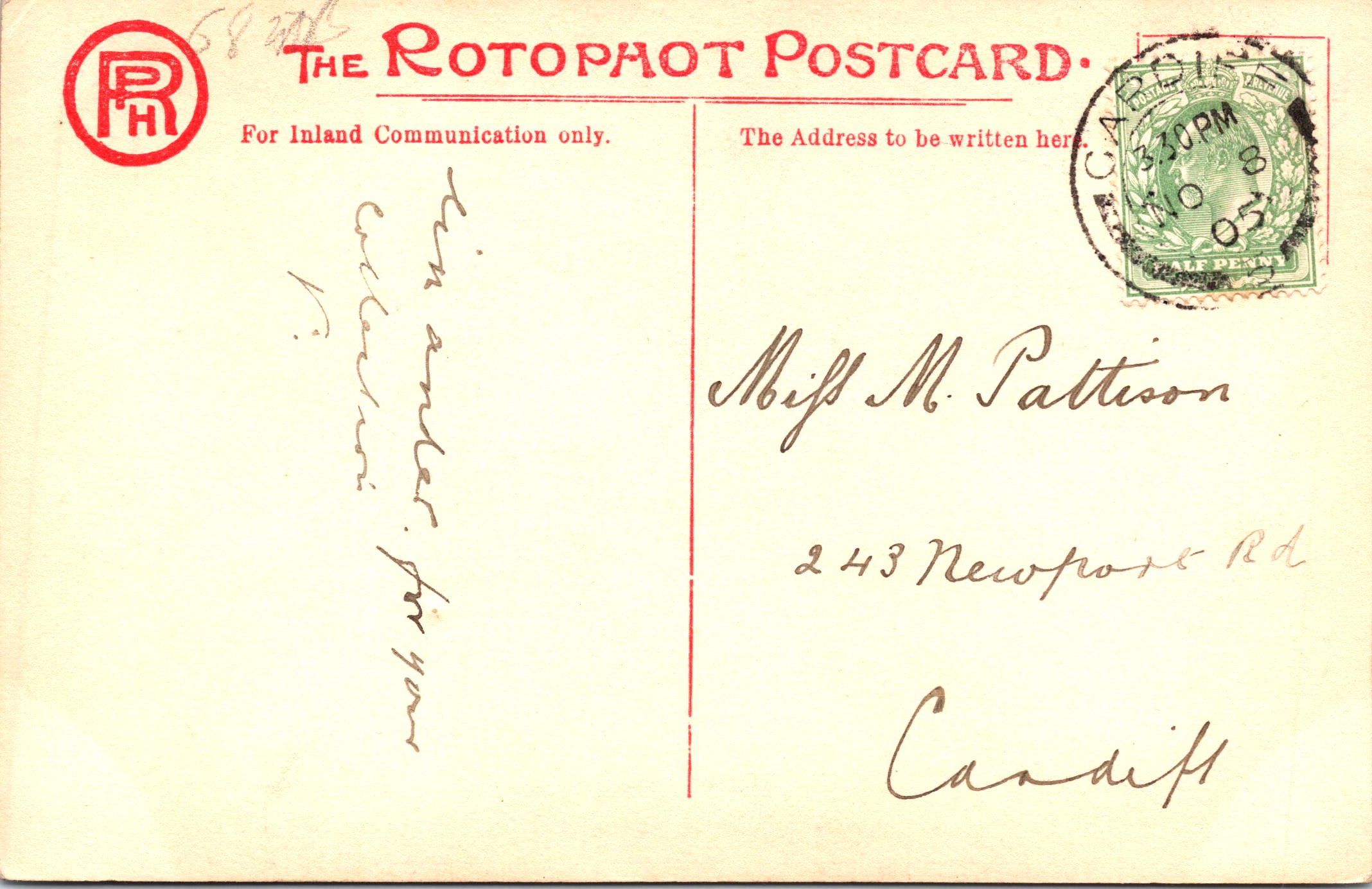 Postcard 8 was published by Rotary Photo as part of a series (no.1861M), This particular card is rare. The postcard has a 1905 postmark and is of British origin. (SOLD)