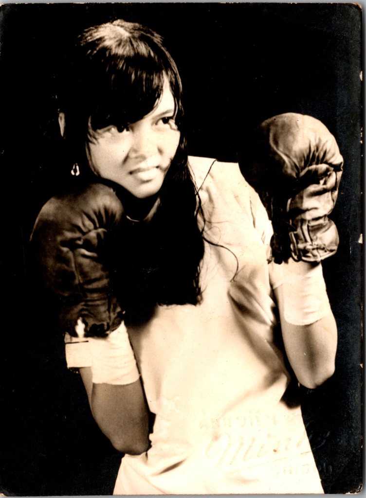 PRETTY YOUNG VIETNAMESE WOMAN WEARING BOXING GLOVES : SAIGON : VINTAGE PHOTO