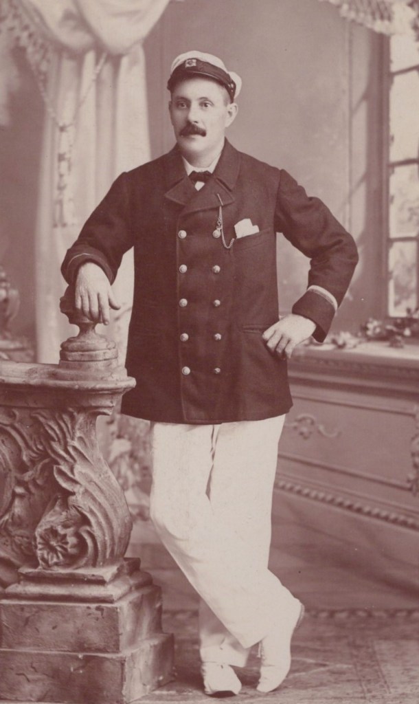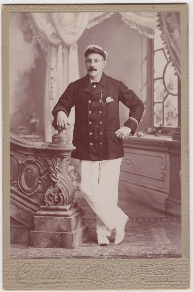 A SHIP CAPTAIN IN PANAMA : IDENTIFIED AS W. C. GIBB : CALM STUDIO : CABINET CARD