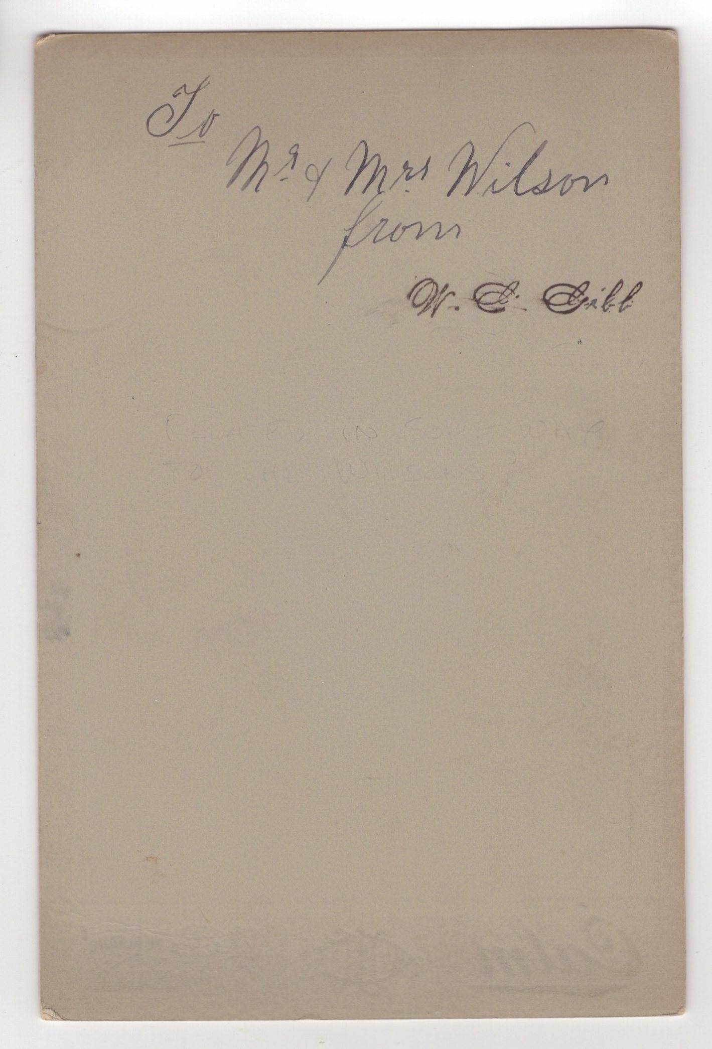 This photograph features a ship captain posing at the Calm Studio, located at the Plazuela De Alfaro in Panama. The card is inscribed to Mr. and Mrs. Wilson and signed by W. C. Gibb. The captain is wearing a nautical uniform and it is unknown whether he is a military or a civilian sailor. Research reveals that the Alfaro Plaza may be named after Jose Eloy Alfaro Delgado (1842 -1912) who was a President of Ecuador who was a strong opponent of pro Catholic conservatism and whose views and actions caused him to be exiled to Panama in 1911. A year later he returned to Ecuador, where he was imprisoned; and then taken from the prison by a mob and executed. SOLD