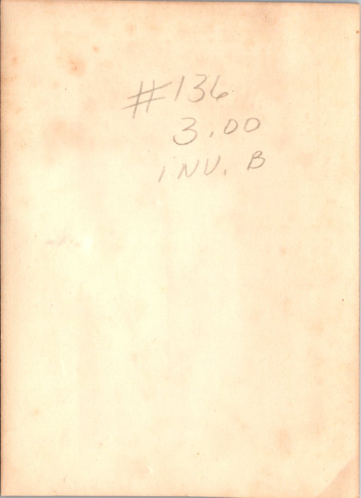 This photograph features a uniformed soldier standing in a farmer’s field and posing behind his bicycle. This photo was found in a shop in the Texas Hill Country. It was part of a group of Foxco images from the mid 1940’s. This photograph was developed by Foxco of San Antonio. The company has an interesting history. The Fox Photo Studio was opened by Arthur C. Fox in 1906 in San Antonio, Texas. Fox sold the studio for seven hundred dollars to Carl D. Newton in 1909. Newton was a clever entrepreneur. One of his gimmicks was to offer a free camera to anyone buying three rolls of film and prepaying developing and printing fees. His successor to the business was Carl D Newton II. By the mid 1930’s Fox advertised itself as the world’s largest Kodak finishers. Their processing plant was in operation around the clock. The company expanded and opened facilities in Dallas, Houston, Louisiana and Oklahoma. The company grew and grew and ultimately reached 12,000 dealers nationwide. In 1986, the company was sold to Kodak. Carl D Newton III kept the retail division of the business, calling it Fox Photo. Later, the business changed hands a number of times until it faded into history. The photo measures about 3 1/4″ x 2 1/4″. (SOLD)