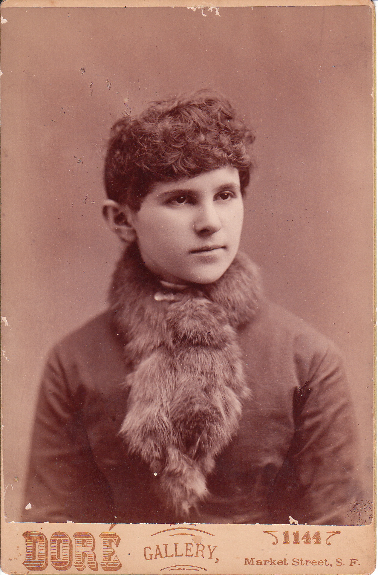 A young woman poses for her photograph at Cobb’s Dore Gallery in San Francisco, California. The woman appears to have a live animal wrapped around her neck, but instead, she’s actually wearing a very intense fur collar. If she was living in modern day San Francisco, she would be a likely target for a lecture, or a paint job, from a PETA member. David Cobb was the proprietor of the Dore Gallery (1881-1889) at the time this photograph was produced. Prior to operating the Dore Gallery, he was a partner in the Edouart & Cobb studio, which was also located in San Francisco. To see other images by Cobb, click on the category “Photographer: Edouart & Cobb”.