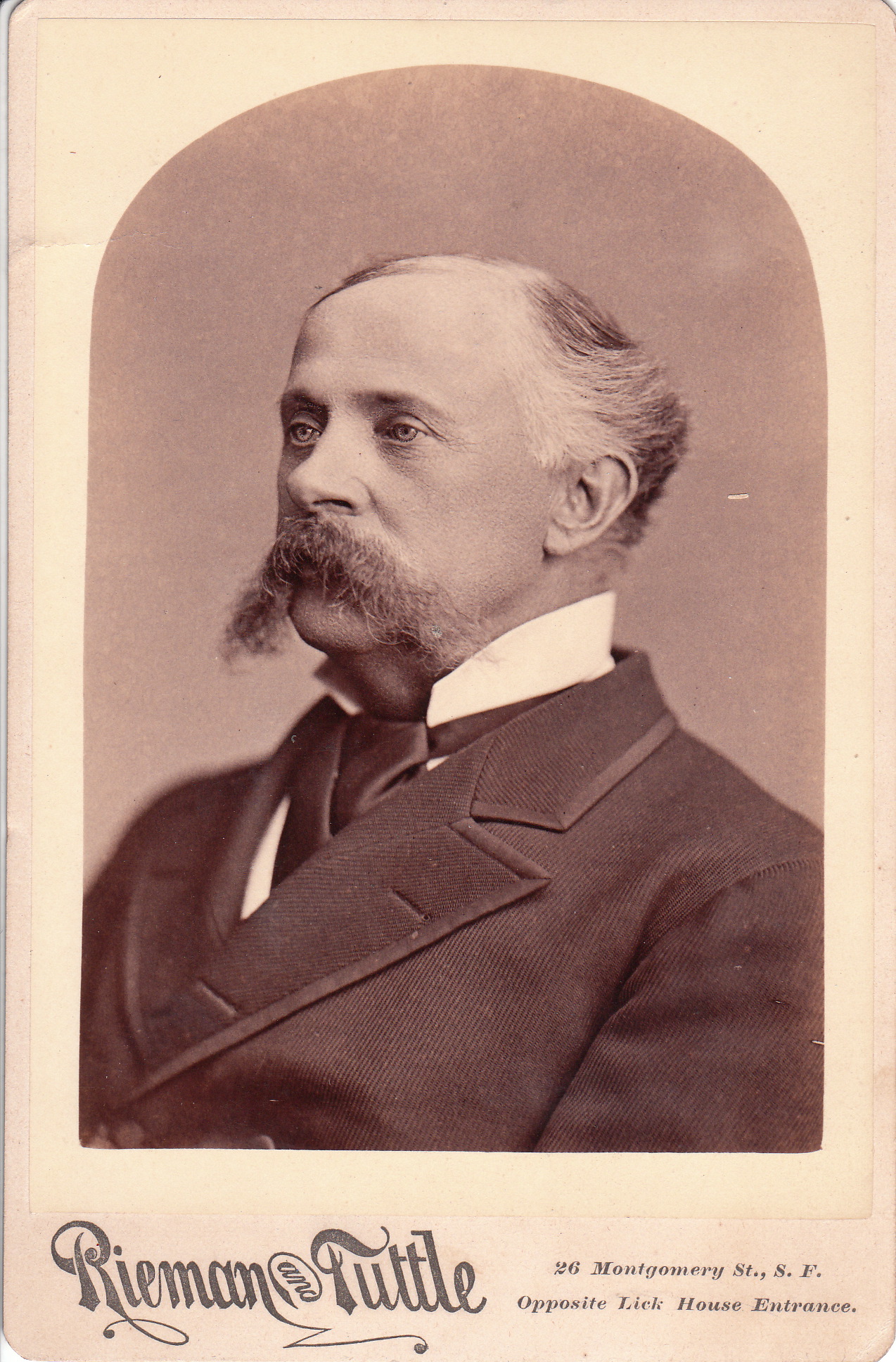 This cabinet card is a portrait of a nicely dressed older gentleman with a bushy mustache. The gentleman appears quite distinguished and may have been part of the elite of San Francisco. The Rieman and Tuttle Studio produced this cabinet card. George B. Rieman and William Nutting Tuttle (1844-1895) became partners in 1879. The first three letters of Mr Tuttle’s middle name seems to have described his personality. He appears to have been a vagabond photographer; working in a number of studios and having multiple business partners in the years proceeding his venture with Rieman. In 1880, Tuttle left his family in Oakland and sailed to Australia to start anew. Tuttle’s wife, Belle, went to Australia to try to convince her husband to return to California. Her efforts were fruitless. Although Tuttle’s photography studios were very successful and he prospered in Australia, he didn’t support his family back in the United States. He stayed abroad until his death in 1895. The Cabinet Card Gallery has some photographs related to this image. To see other terrific mustaches, click on the category “Mustaches (Only the Best). To view other photographs by Rieman, and to learn more about his life, click on the category “Photographer: Rieman”.