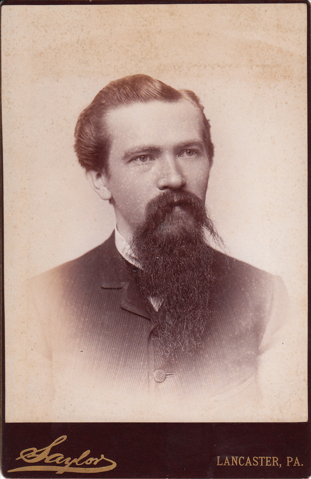 This cabinet card features a handsome gentleman with an interesting looking beard and mustache. The photographer of this image is Benjamin Franklin Saylor, of Lancaster, Pennsylvania. His studio was the successor of Charles W. Eberman, in Lancaster. Saylor’s studio was located at 26 West King Street. Saylor was born in 1838 in Trappe, Pennsylvania. He was of German ancestry. Saylor was educated in public schools and at thirteen years of age, his father, a carpenter, died while doing work around his residence. Saylor moved to Philadelphia and at age 20, learned the business of photography. At age 27, he came to Lancaster and took over Eberman’s photo gallery. To view other interesting photographs of beards, click on the category of “Beards (Only the Best).