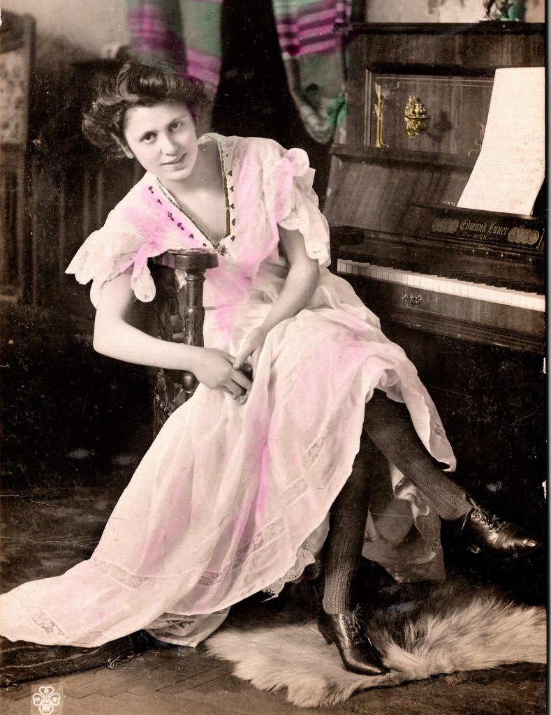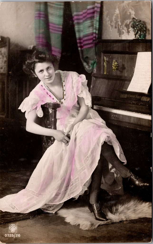 This vintage sheet music features World War l song, “Salvation Lassie of Mine”. The song was written by Jack Caddigan and Chick Story. This sheet music was published in 1919 by Leopold Feist (1869-1930). His firm was founded in 1897 and was located in New York City. Feist was a pioneer in the popular music publishing business. The cover of the sheet music has a photo of a Salvation Army nurse with soldiers entering a Salvation Army Hut. This song made the top 20 charts, reaching as high as number 18. The sheet music measures about 10.50 x 7.25 inches (small format). This sheet music has a quarter inch separation at the bottom of it’s spine. The sheet music is in overall very good condition (see scans). (SOLD)