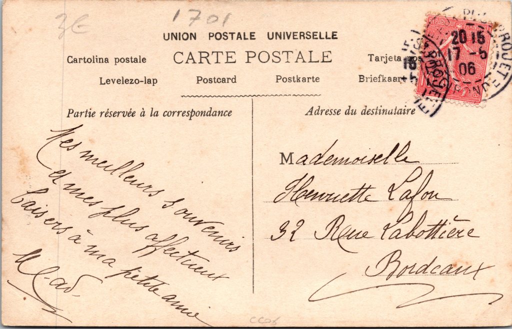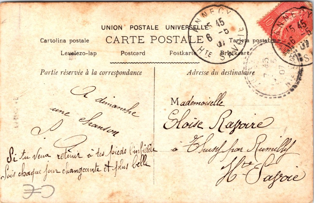 Postcard 3 features another photograph by Paul Boyer and this postcard was also published by SIP as part of a series (No.1441). The image was hand tinted. This postcard was postmarked in 1906. (SOLD)