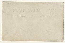 Welcome to Mudville. This vintage real photo postcard features three uniformed baseball players. The young men are wearing the uniform of St. Joseph school. Two of the players are wearing fielding gloves and the player in the middle is equipped with a catcher’s glove. The ball players appear to be standing on a ball field in front of empty bleachers. The AZO stamp box on the reverse of this photo postcard indicates that the postcard was published sometime between 1926 and the 1940’s.